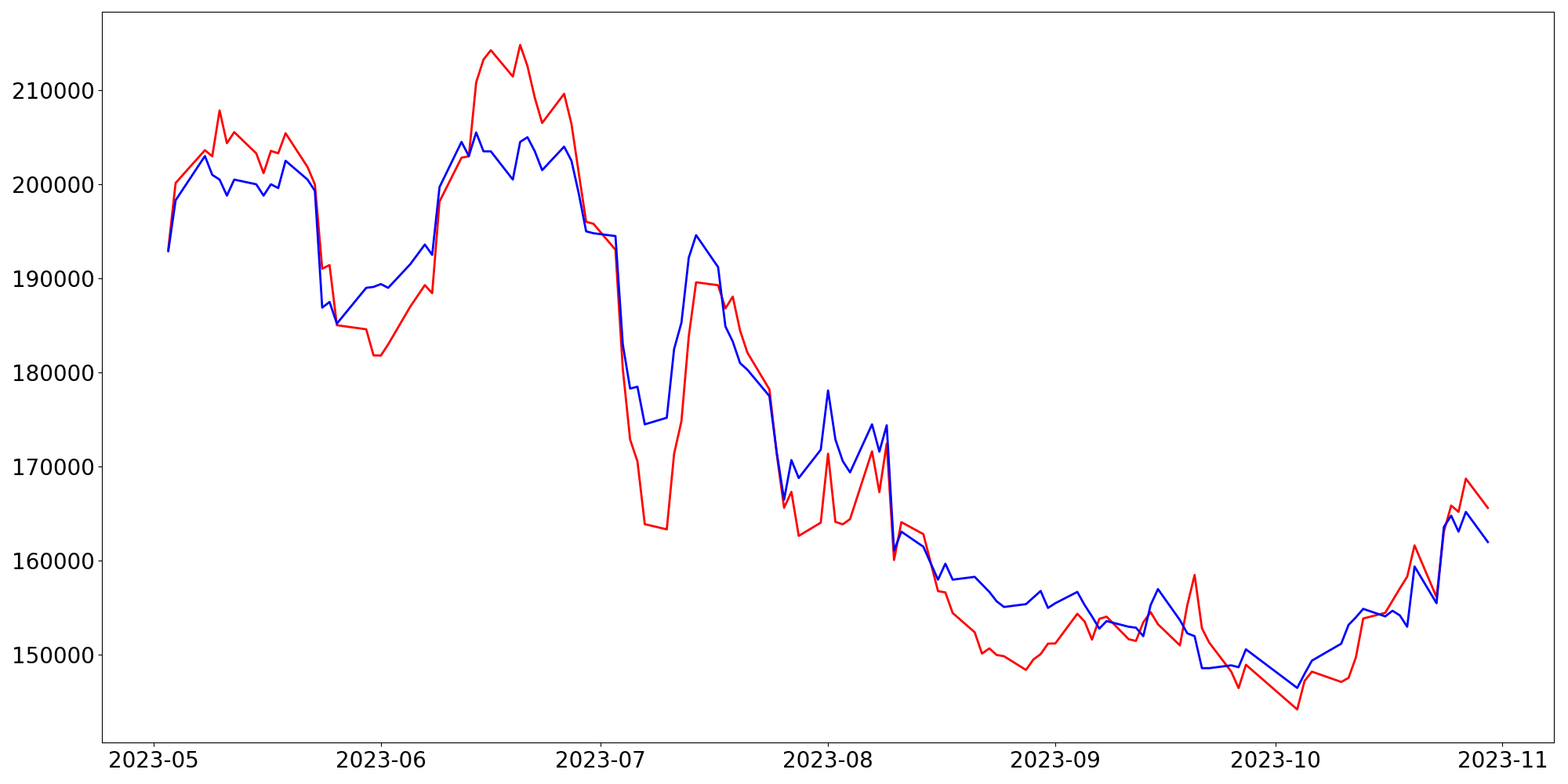 [ - : 실제값(종가) / - : 예측값(종가) ]