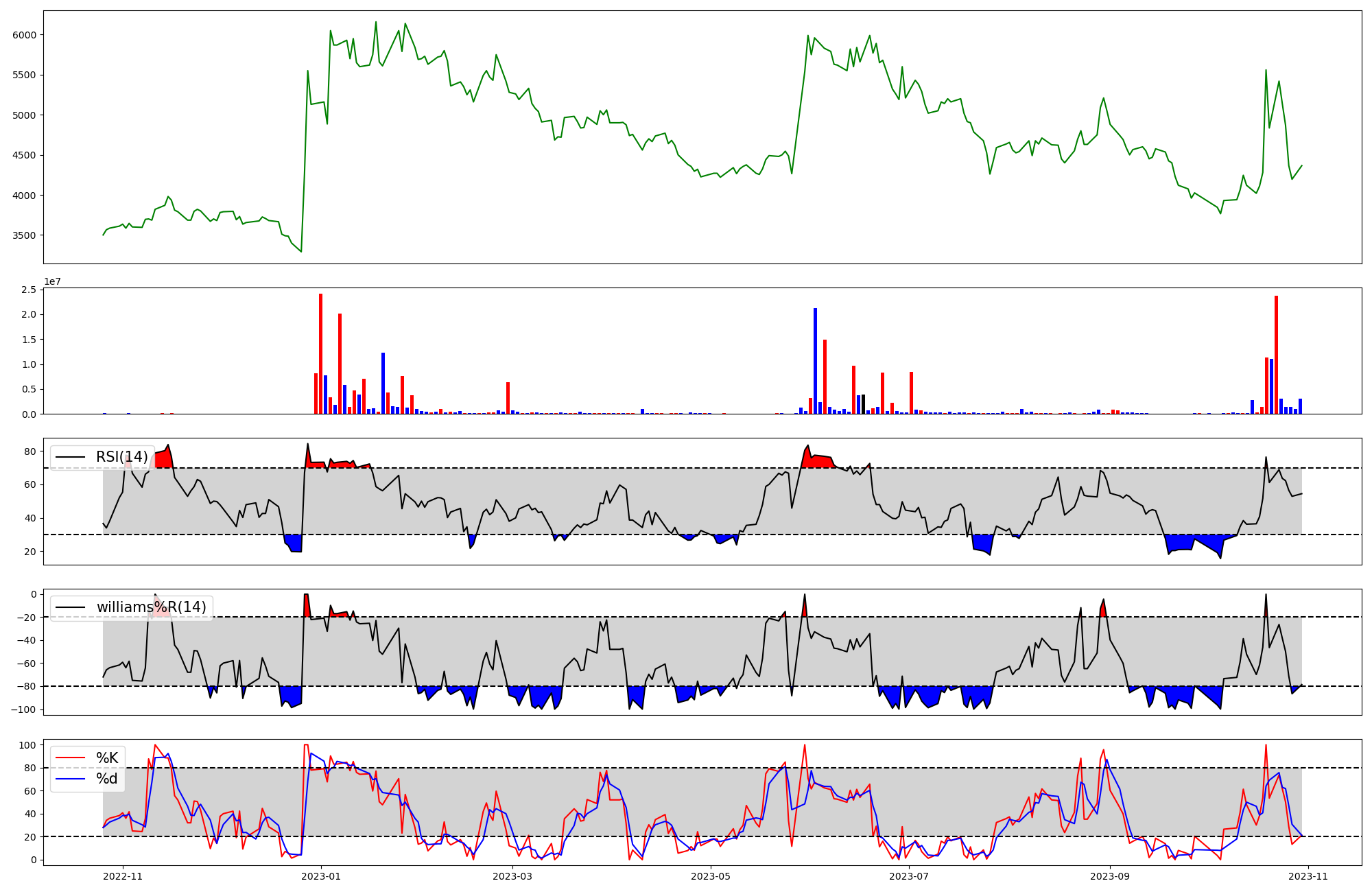 | RSI | Williams %R | stochastic(%K) | |
