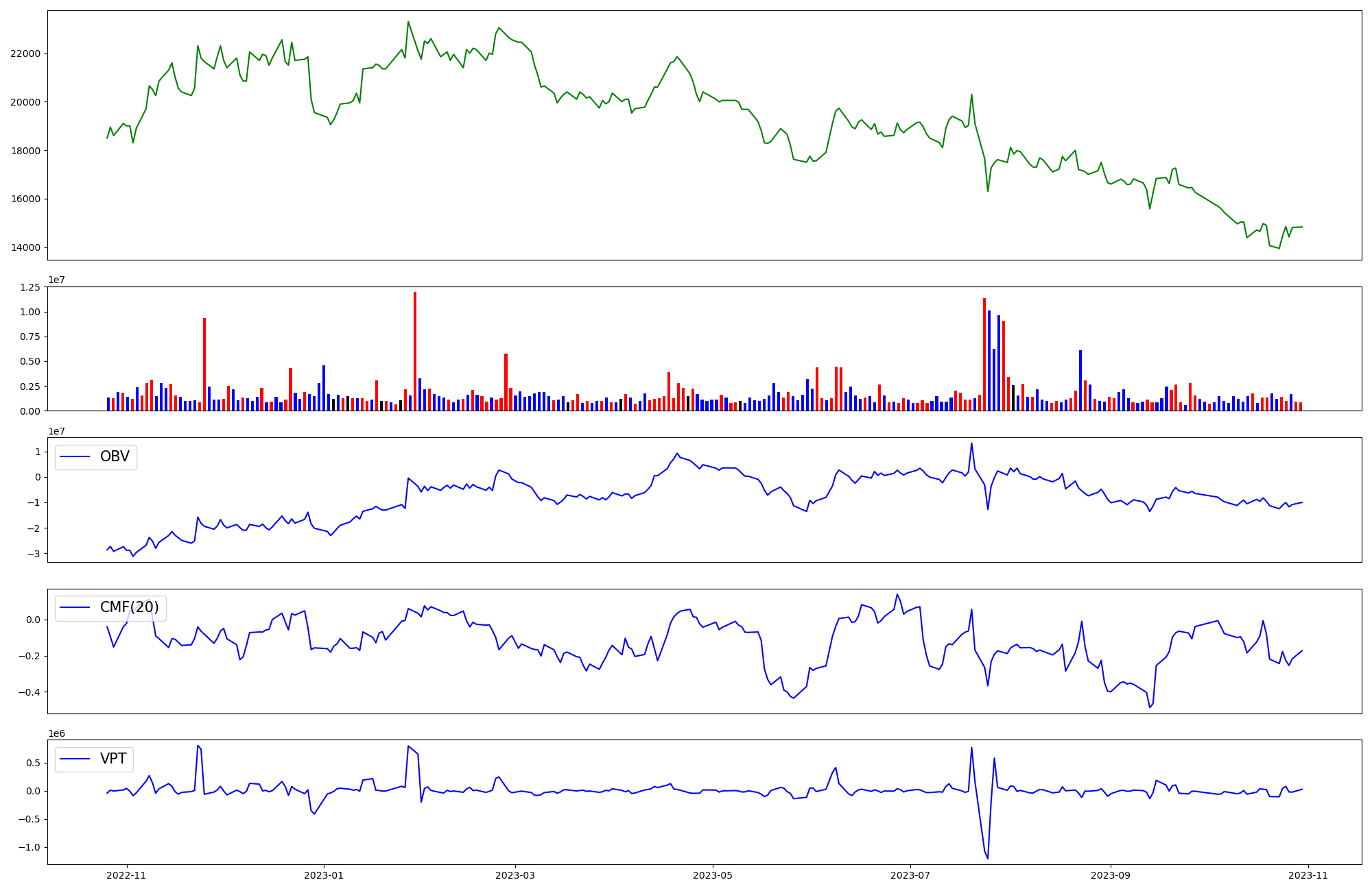 | OBV | CMF | VPT | |
