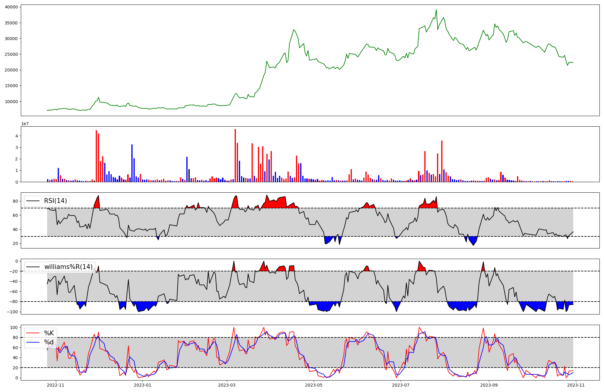 | RSI | Williams %R | stochastic(%K) | |