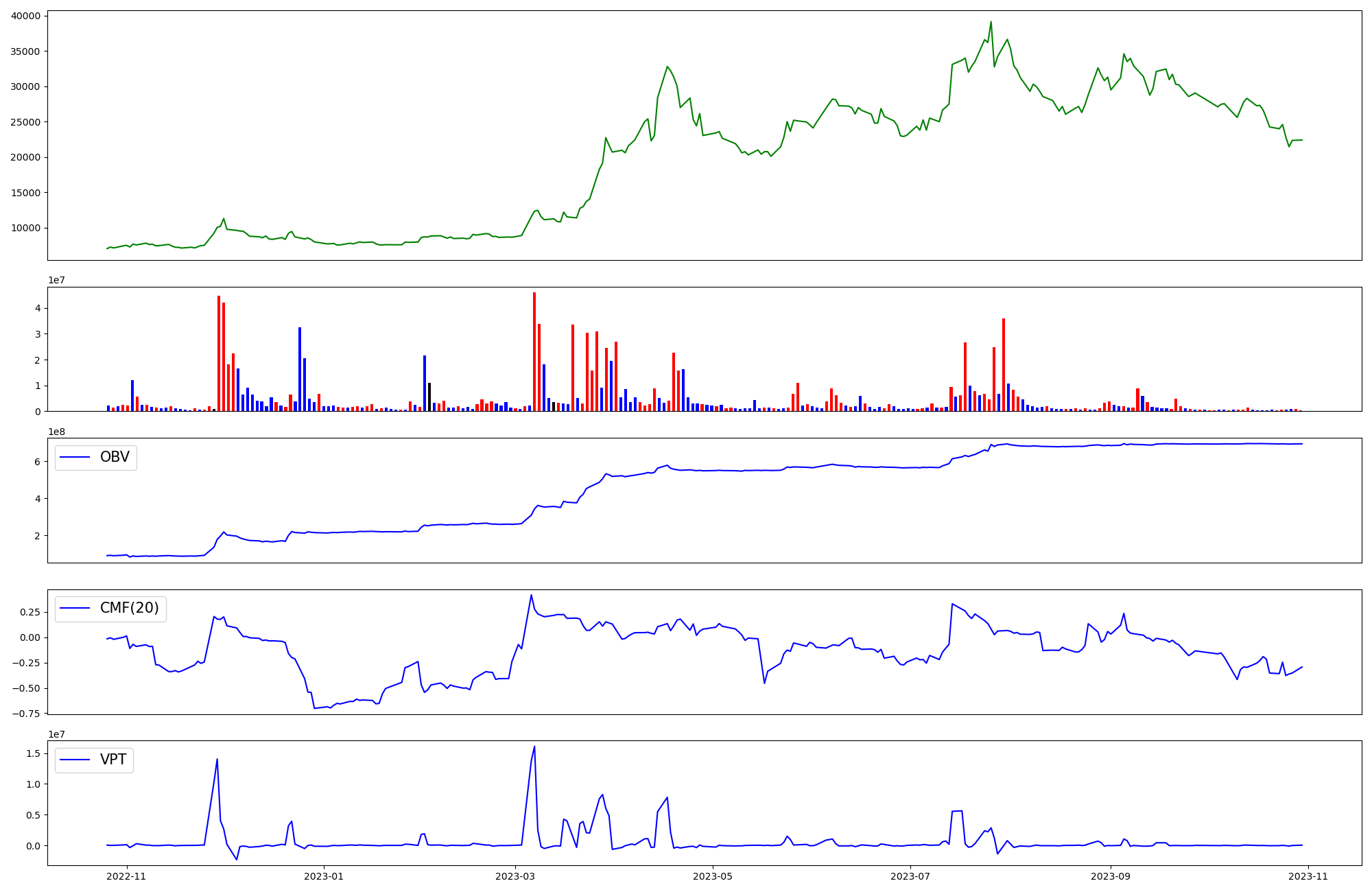 | OBV | CMF | VPT | |