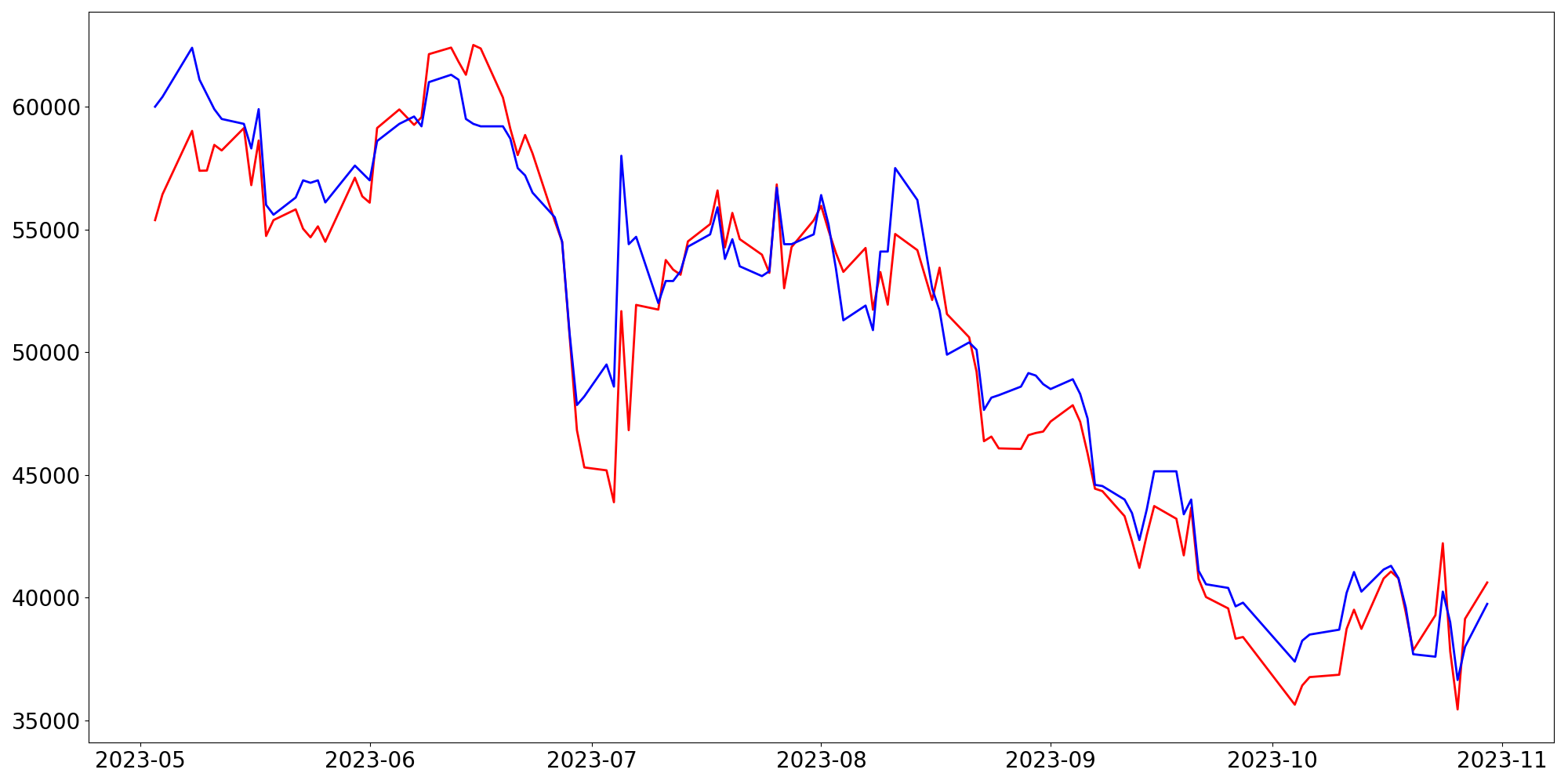 [ - : 실제값(종가) / - : 예측값(종가) ]