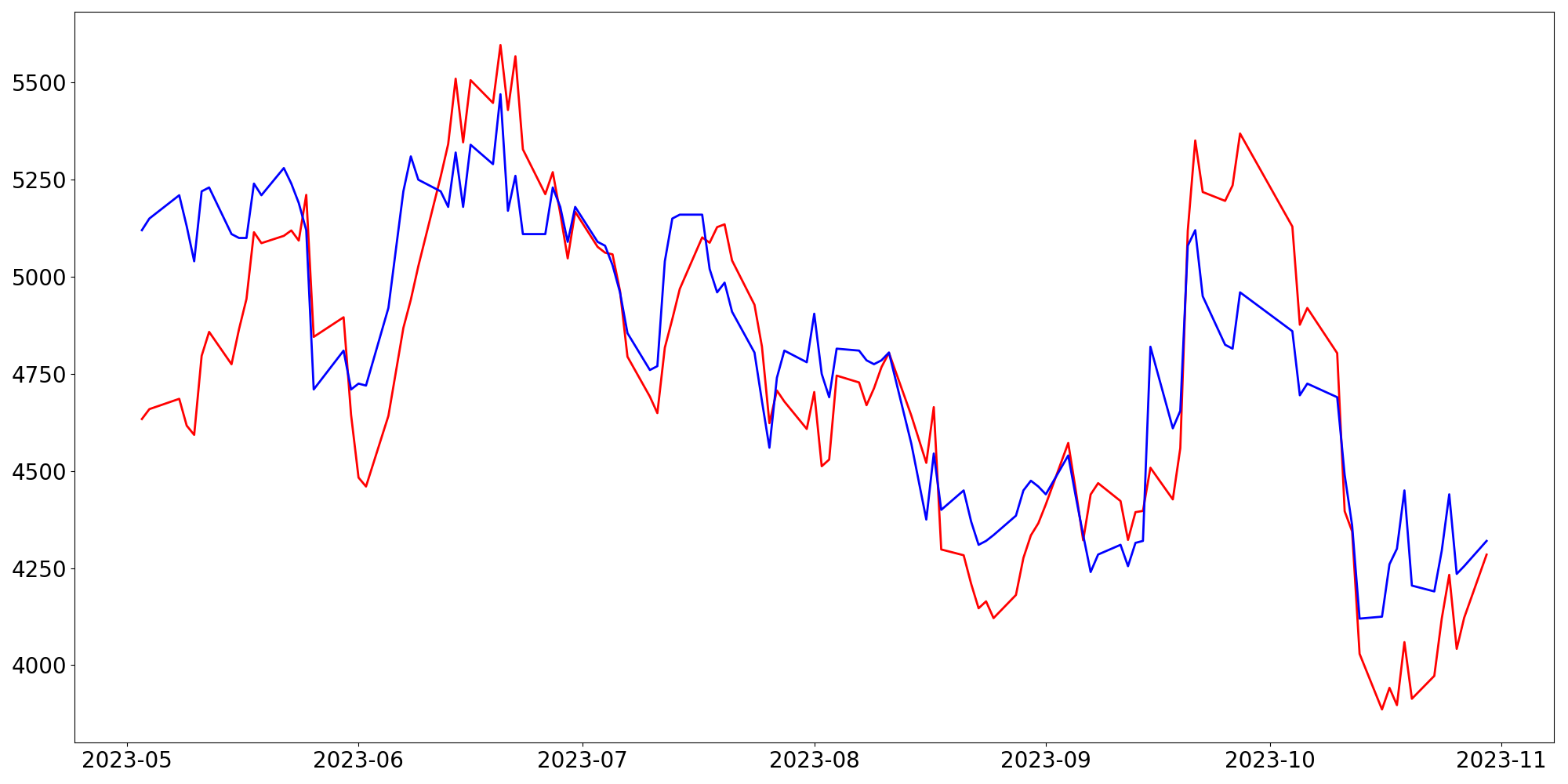 [ - : 실제값(종가) / - : 예측값(종가) ]