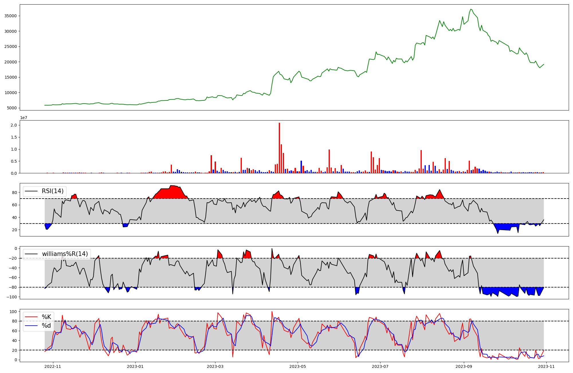 | RSI | Williams %R | stochastic(%K) | |