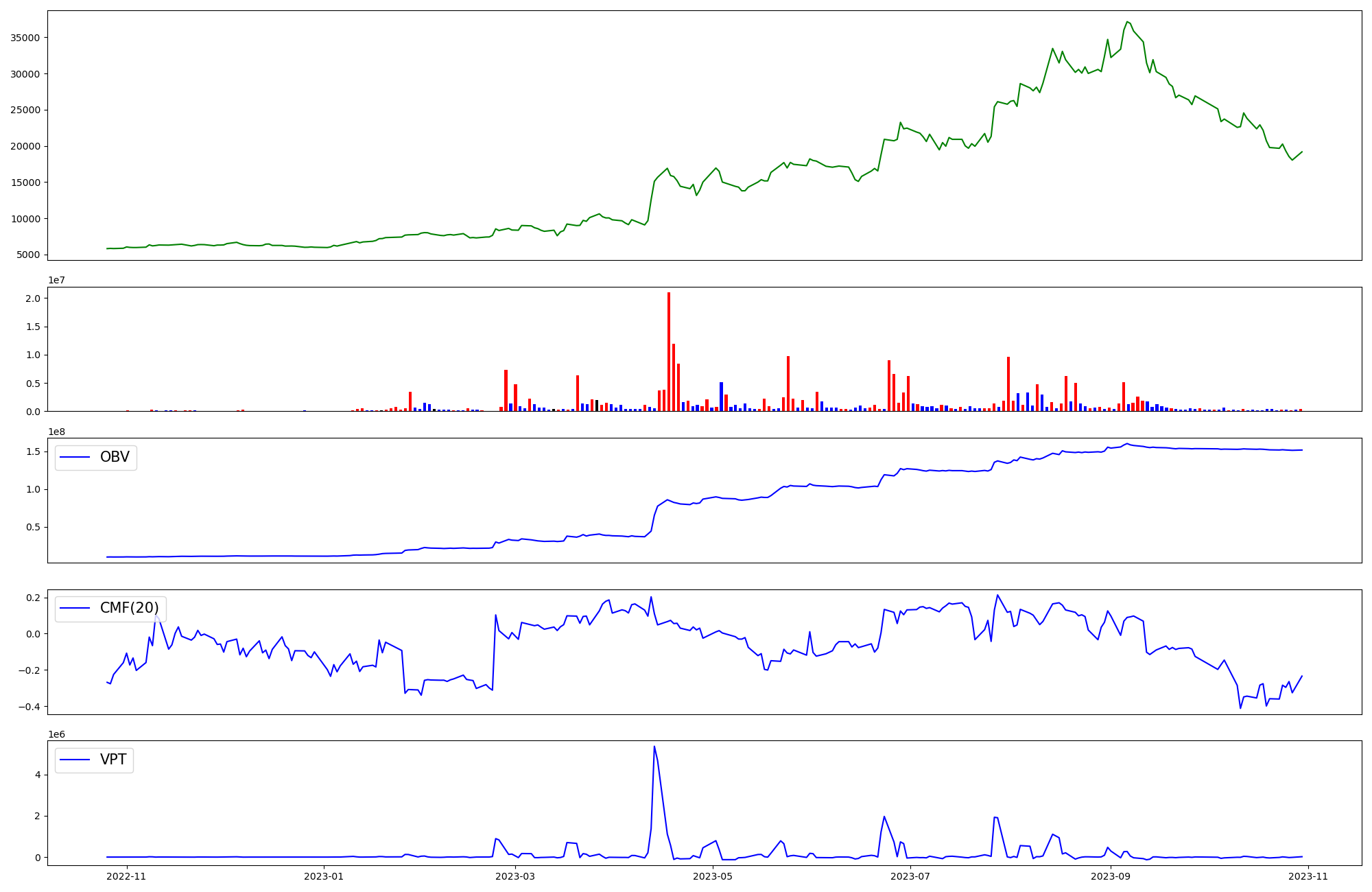 | OBV | CMF | VPT | |