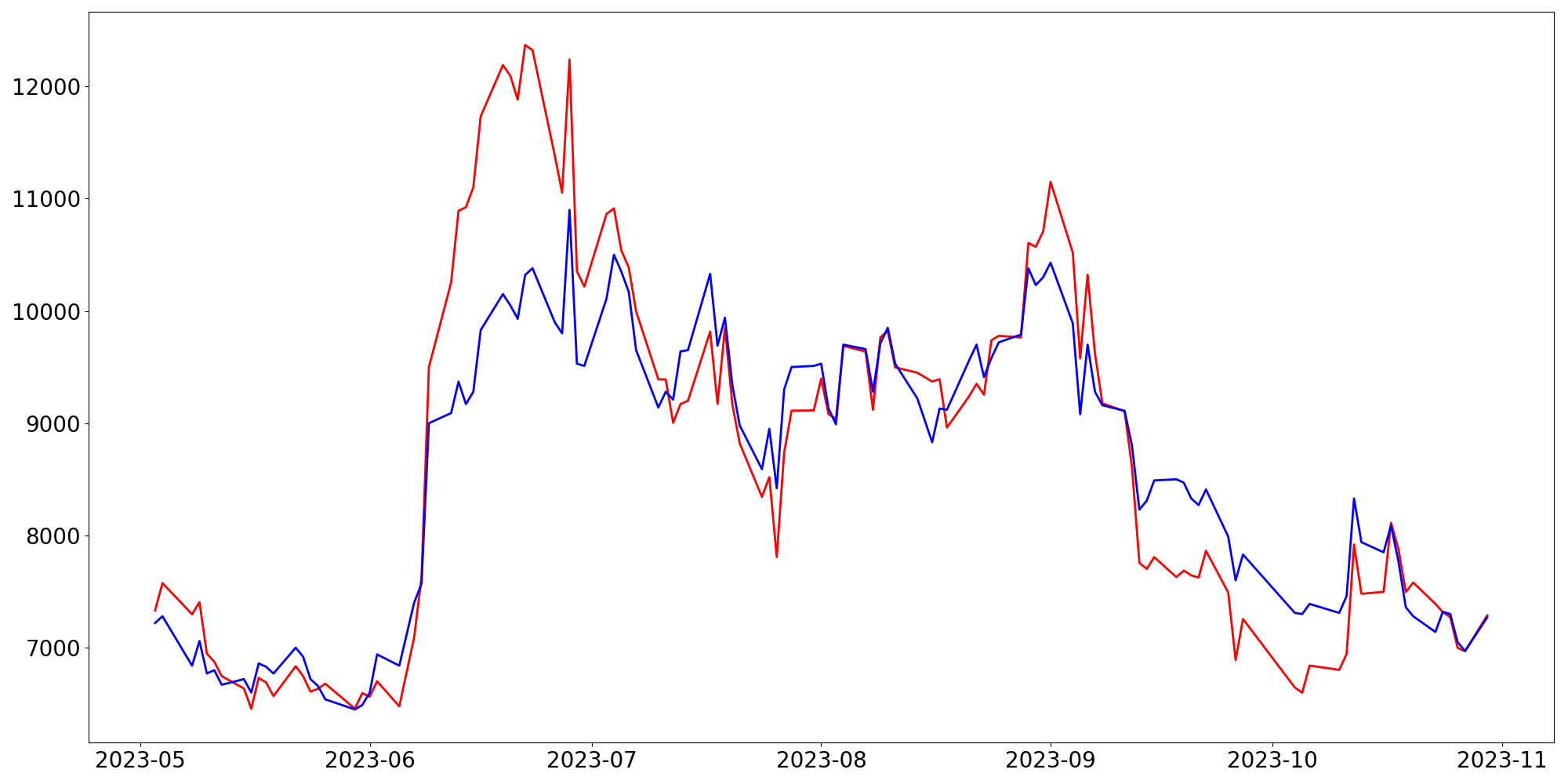 [ - : 실제값(종가) / - : 예측값(종가) ]