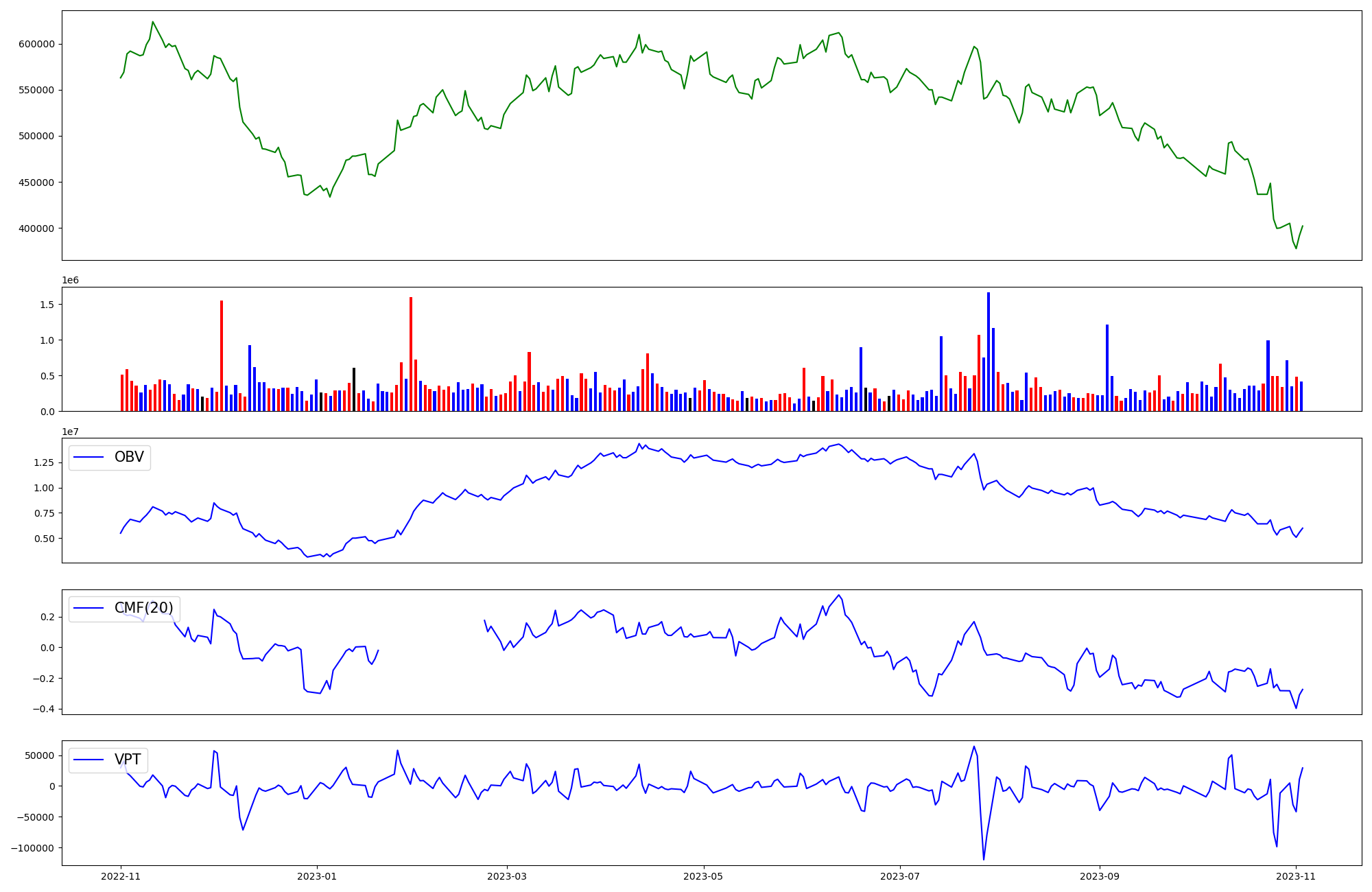 | OBV | CMF | VPT | |