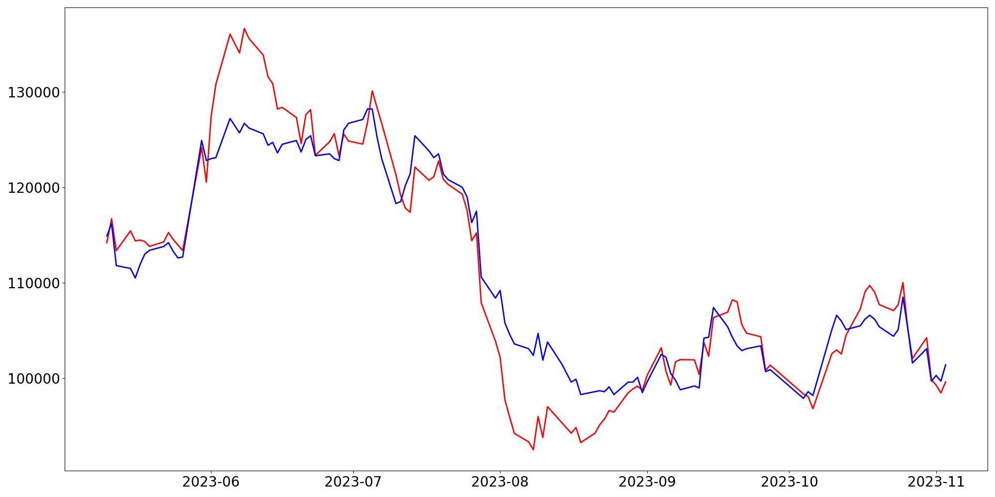 [ - : 실제값(종가) / - : 예측값(종가) ]