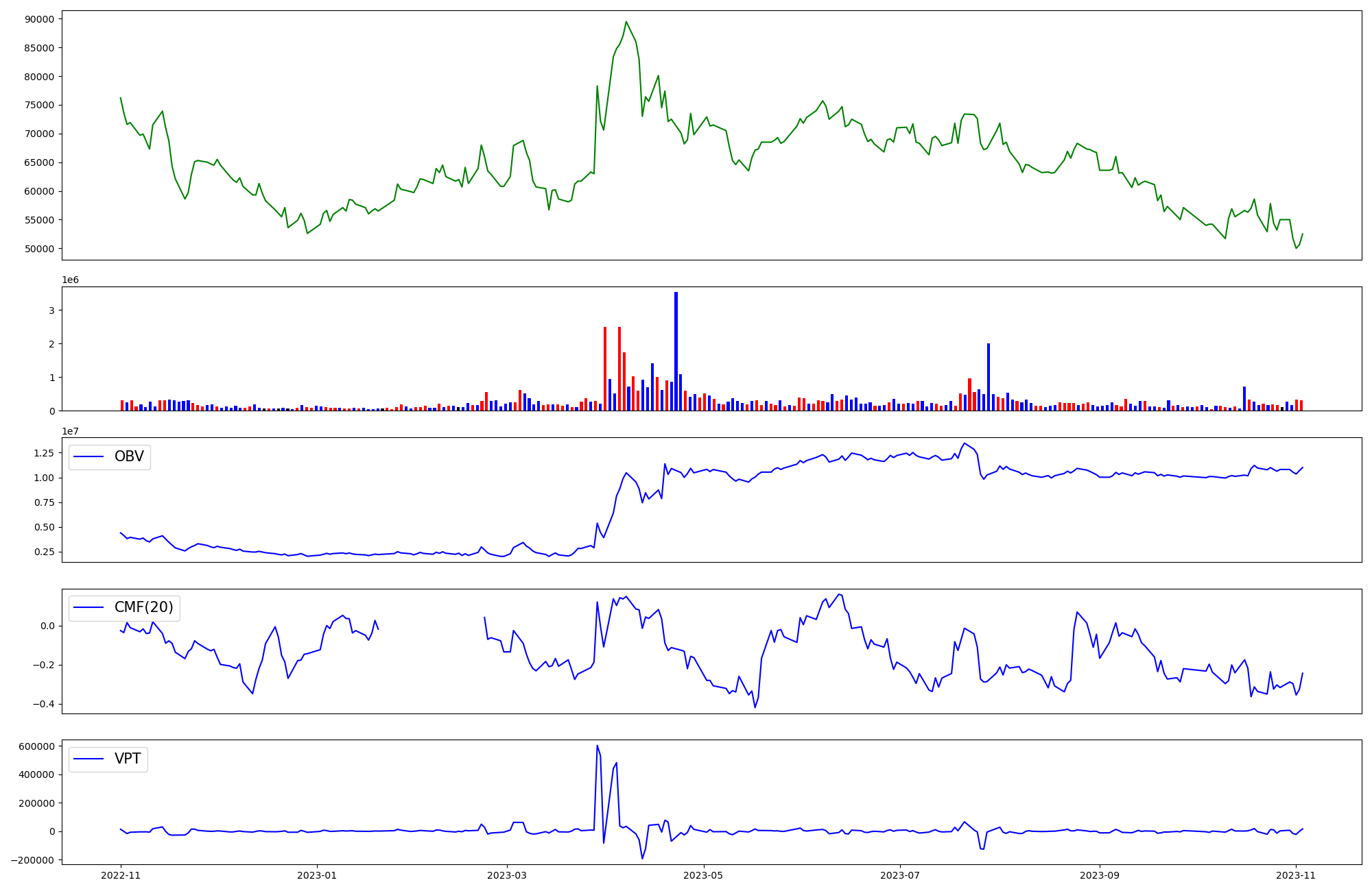 | OBV | CMF | VPT | |