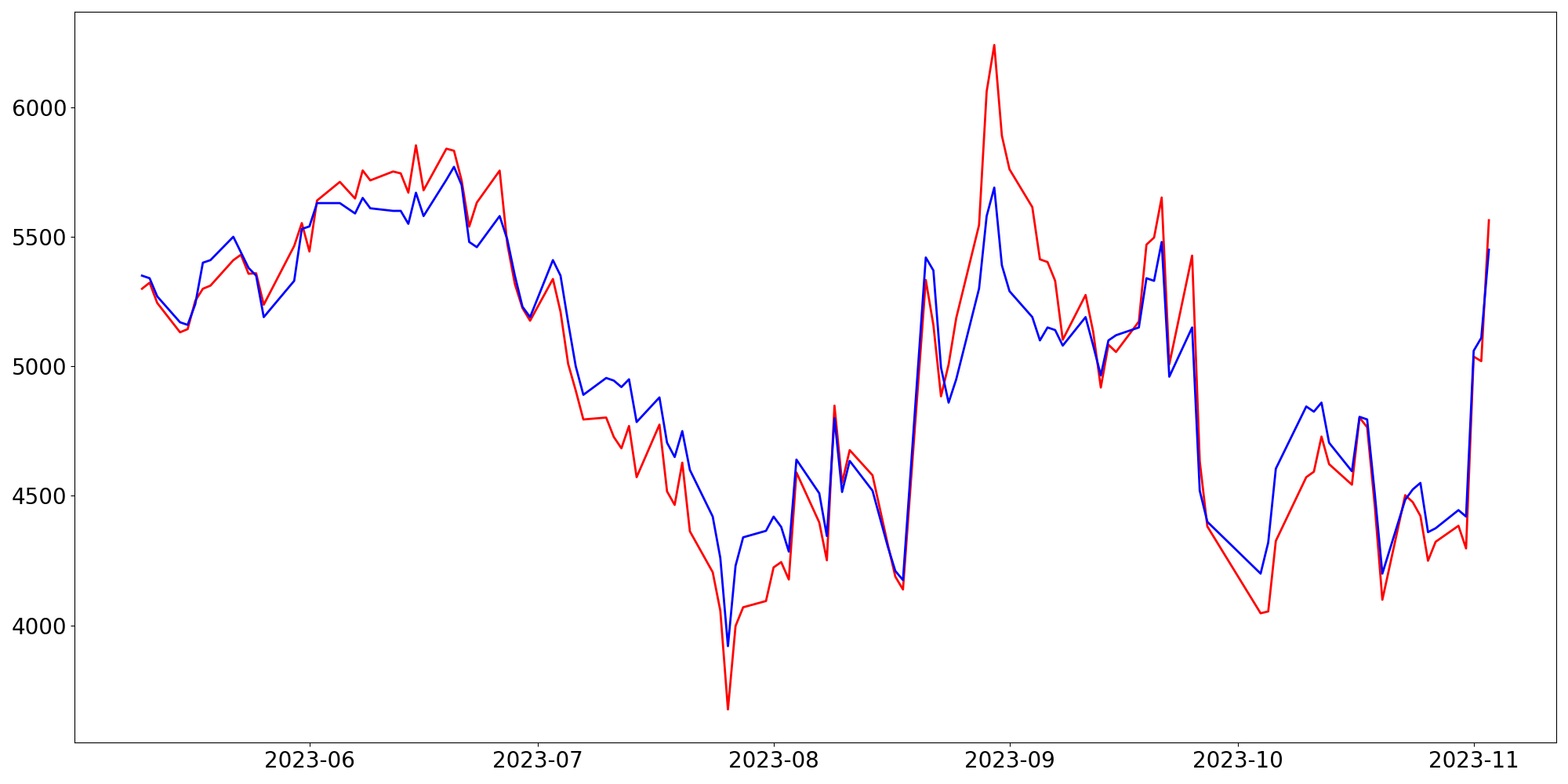 [ - : 실제값(종가) / - : 예측값(종가) ]
