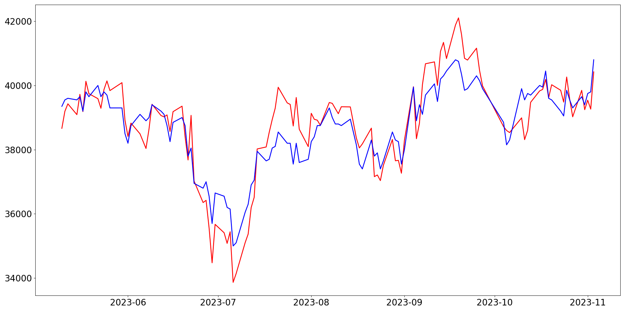 [ - : 실제값(종가) / - : 예측값(종가) ]