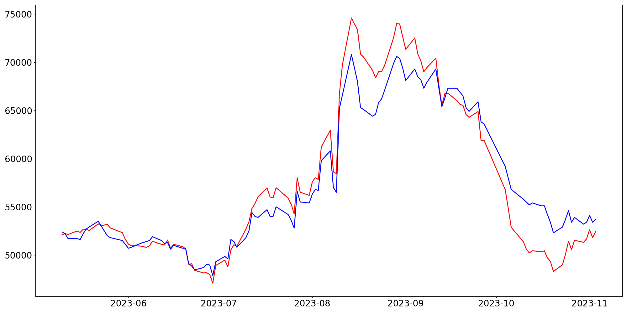 [ - : 실제값(종가) / - : 예측값(종가) ]