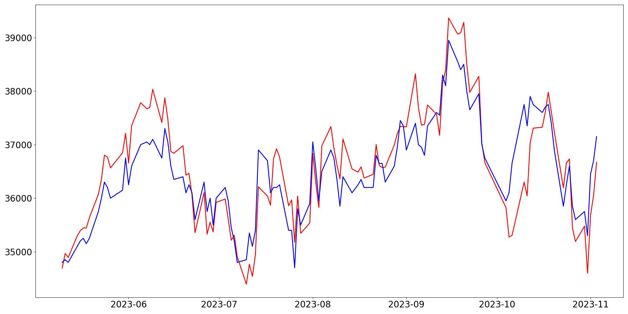 [ - : 실제값(종가) / - : 예측값(종가) ]