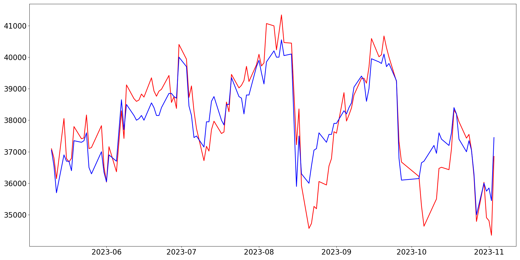 [ - : 실제값(종가) / - : 예측값(종가) ]