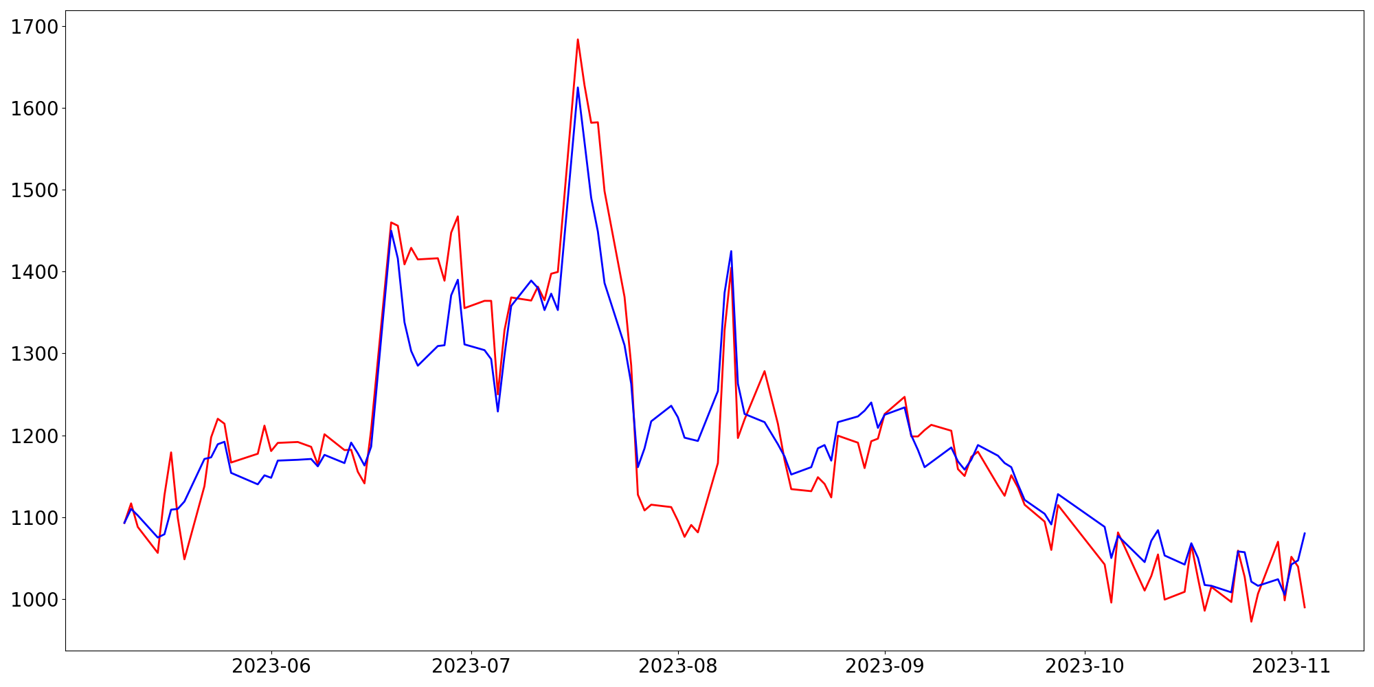 [ - : 실제값(종가) / - : 예측값(종가) ]