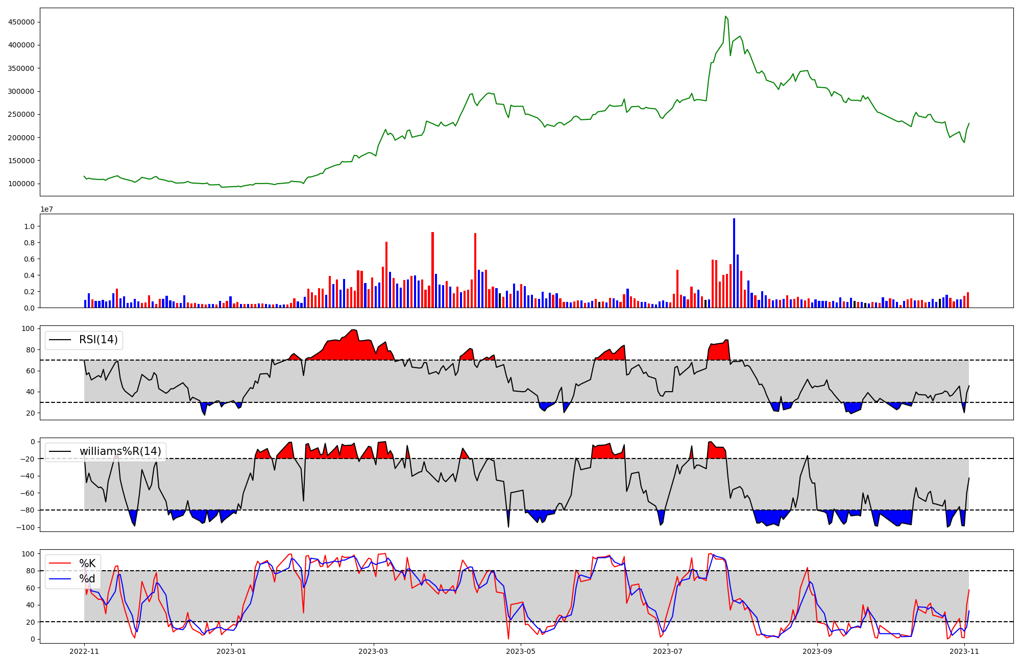 | RSI | Williams %R | stochastic(%K) | |