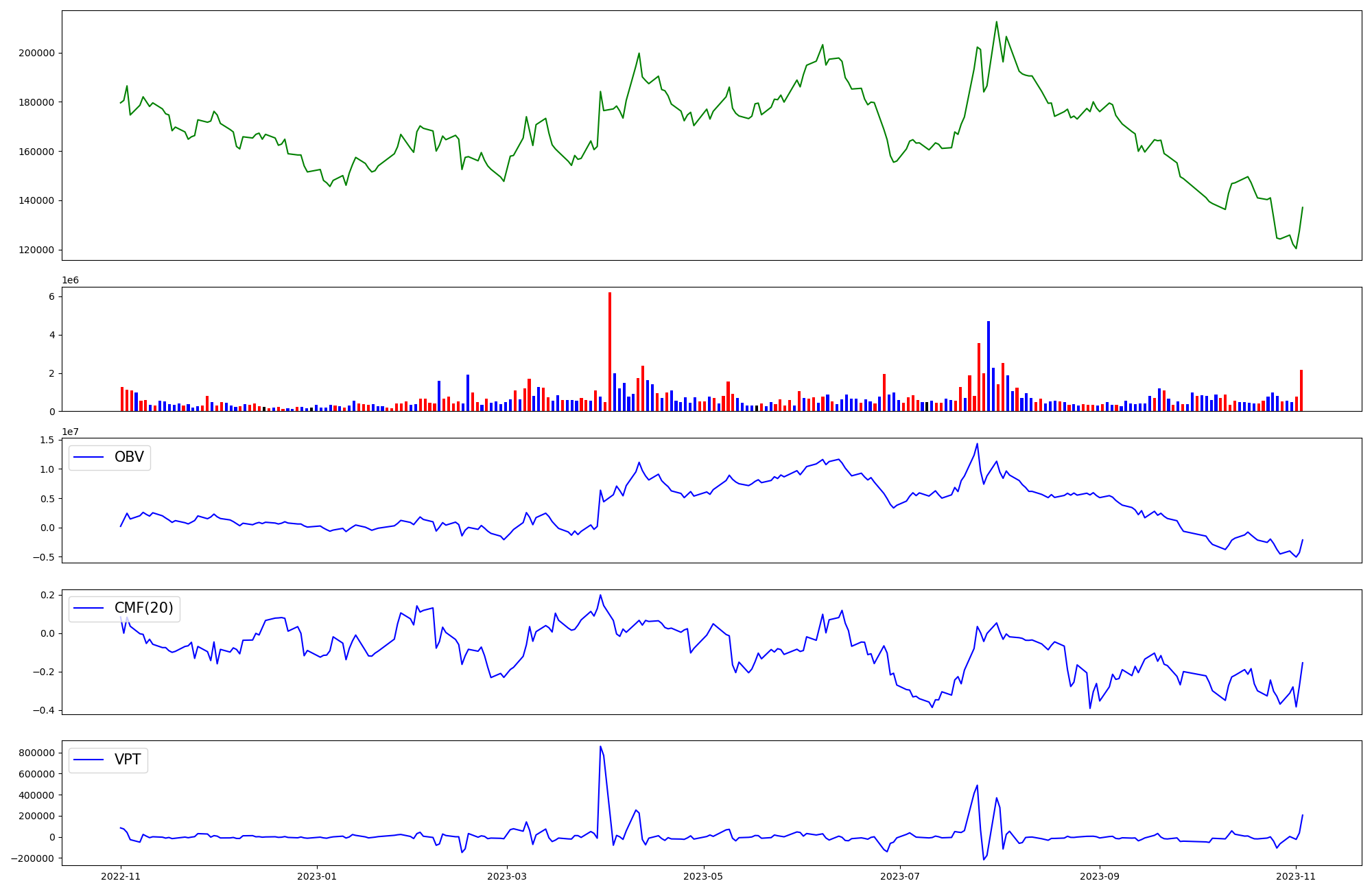 | OBV | CMF | VPT | |