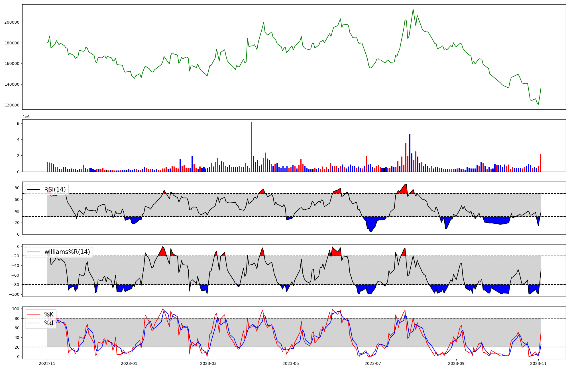 | RSI | Williams %R | stochastic(%K) | |