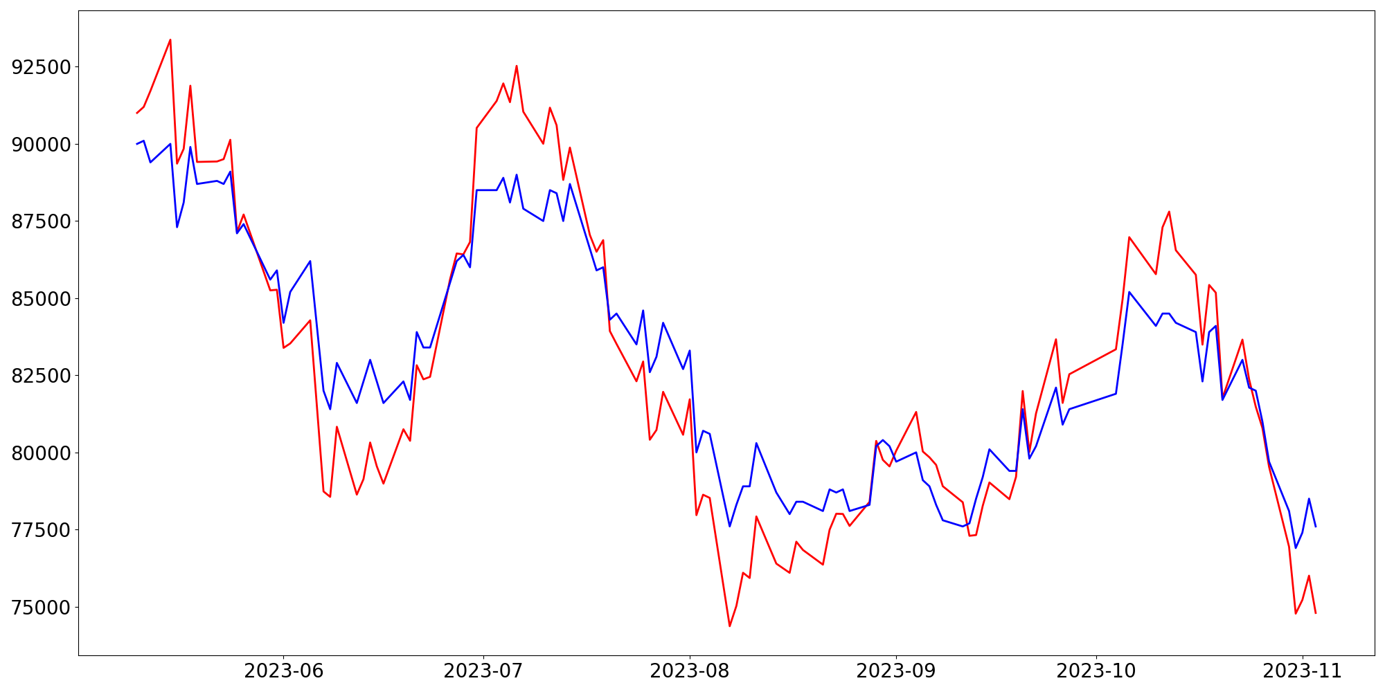 [ - : 실제값(종가) / - : 예측값(종가) ]