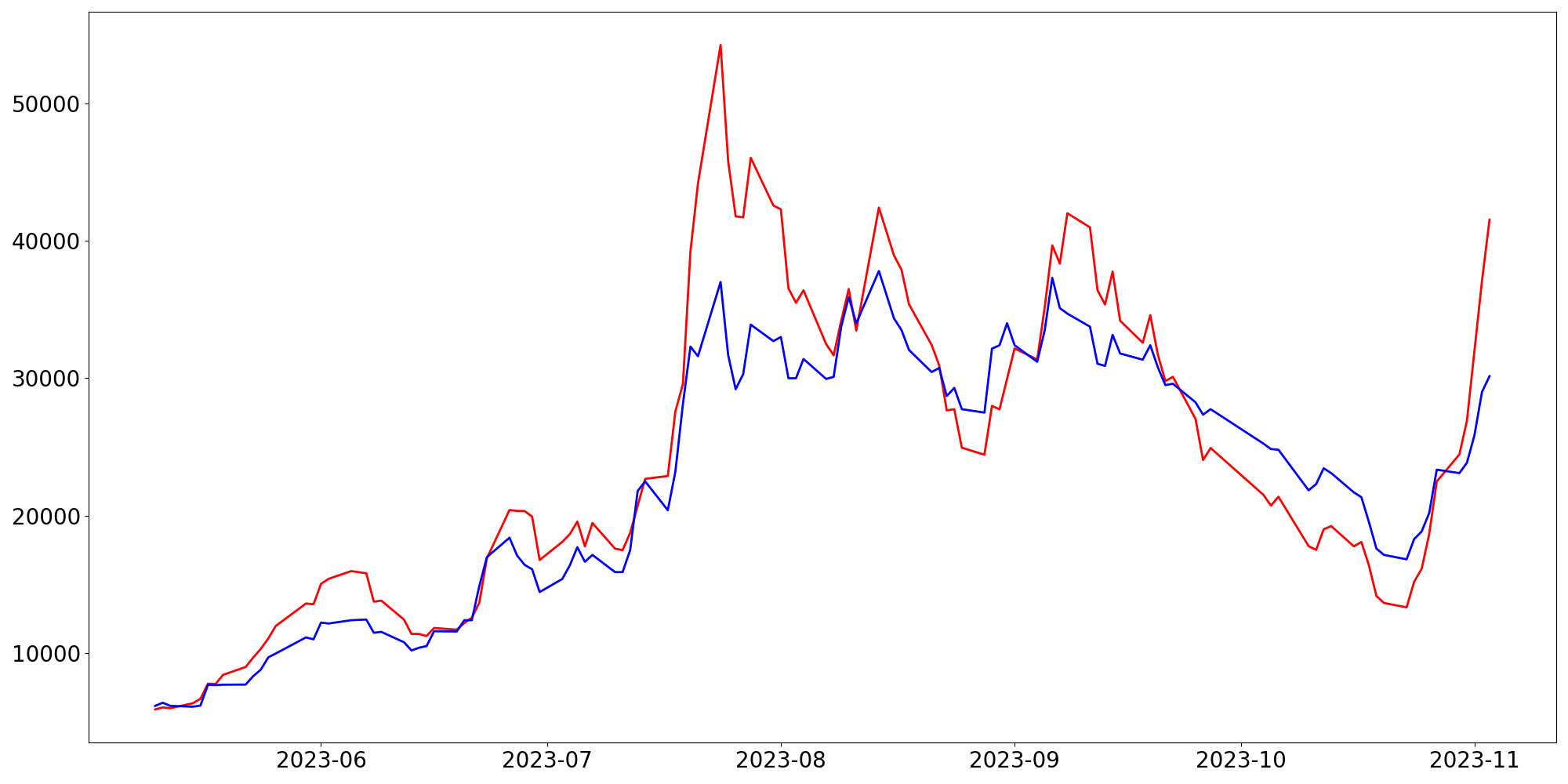 [ - : 실제값(종가) / - : 예측값(종가) ]