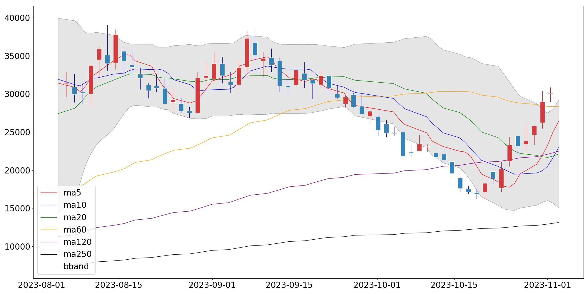 | 단순이동평균 | 26,390.00 | 22,949.00 | 22,117.50 |