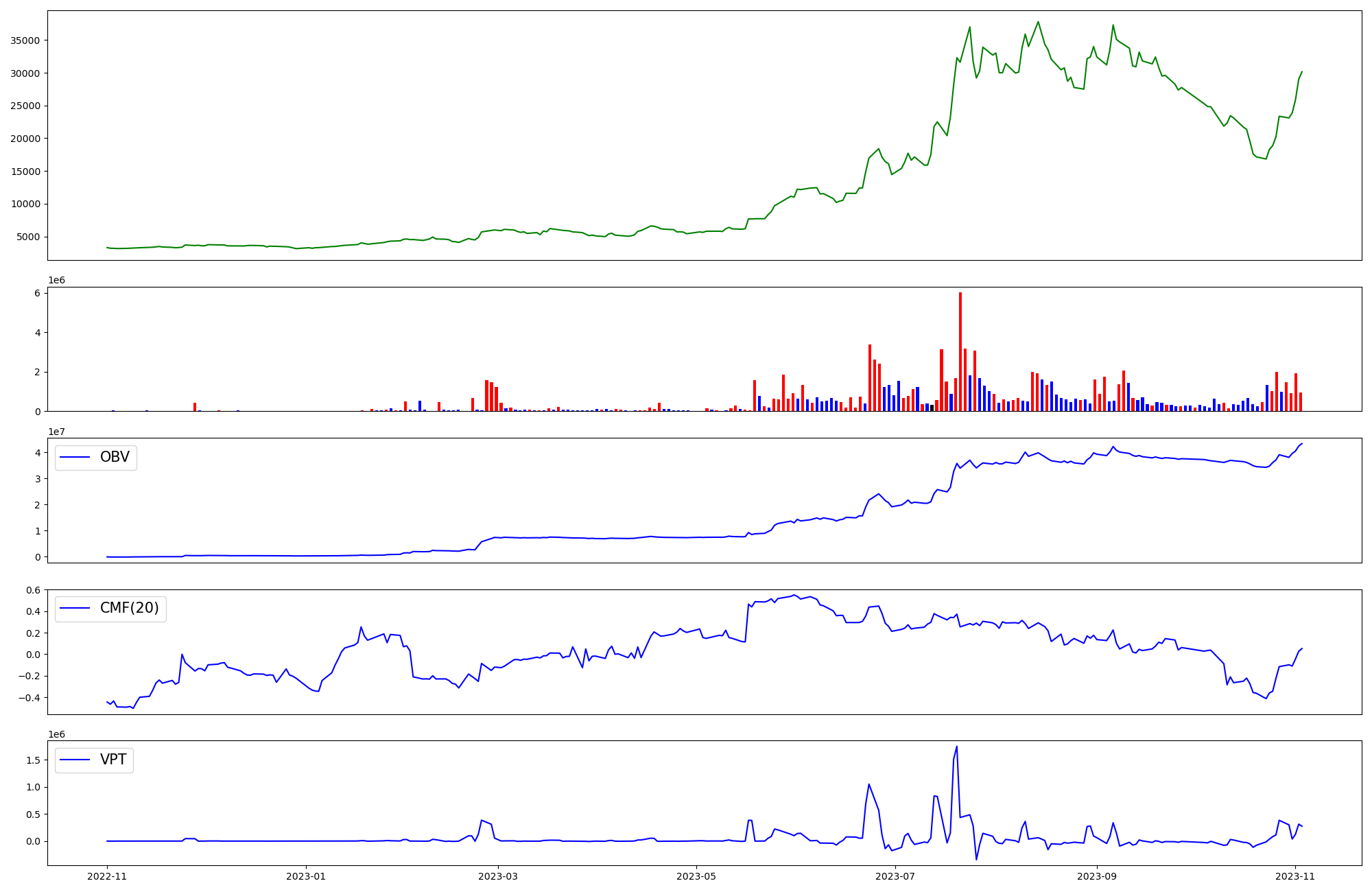| OBV | CMF | VPT | |