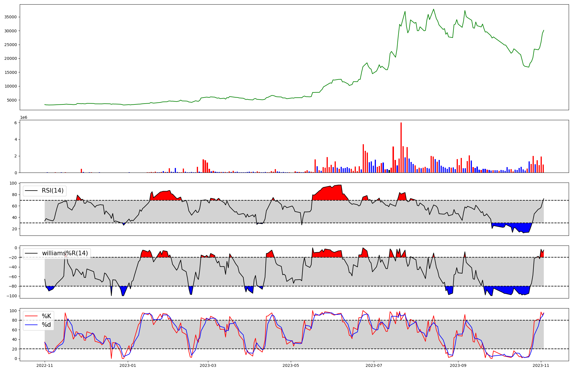 | RSI | Williams %R | stochastic(%K) | |