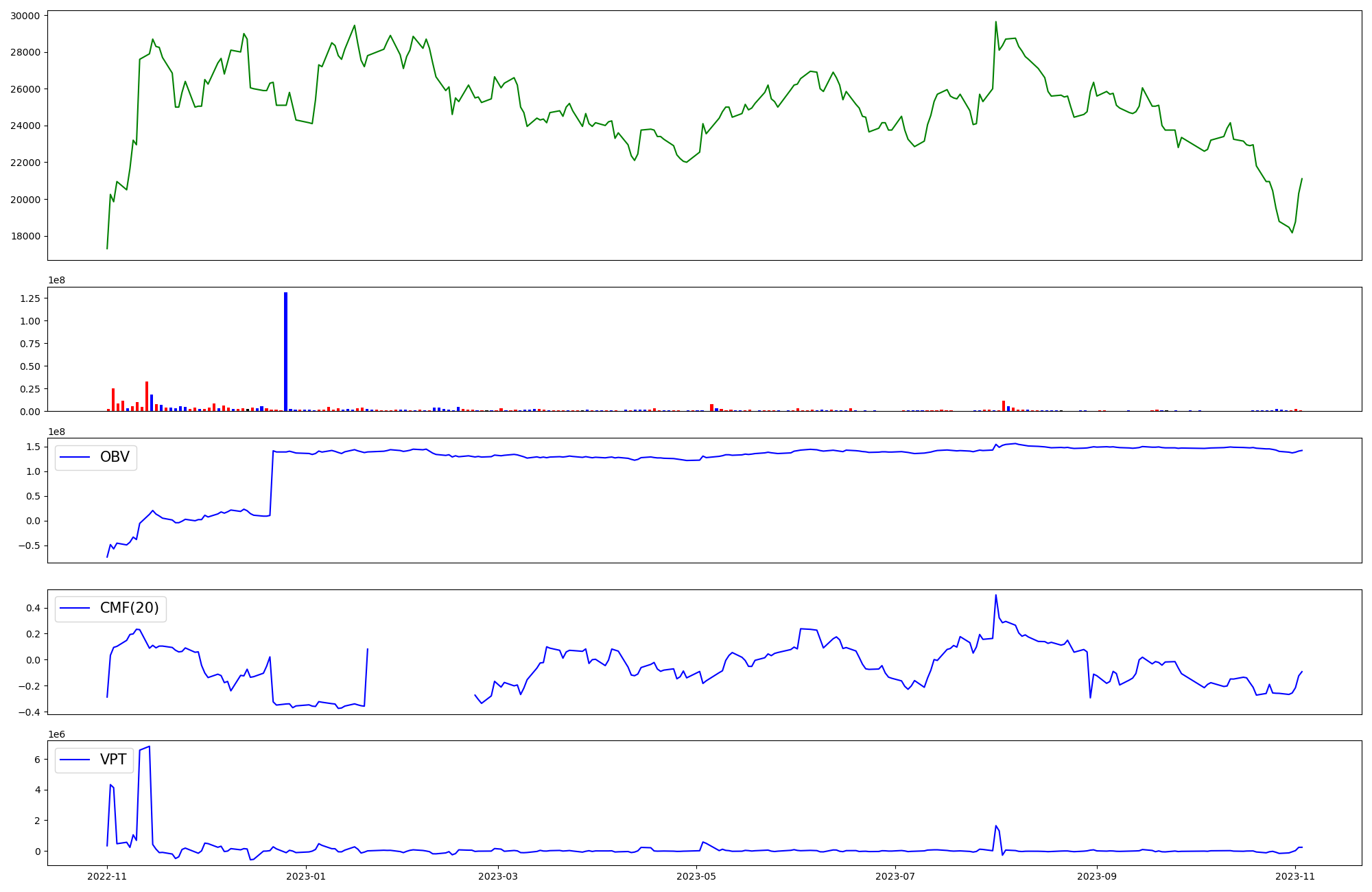 | OBV | CMF | VPT | |