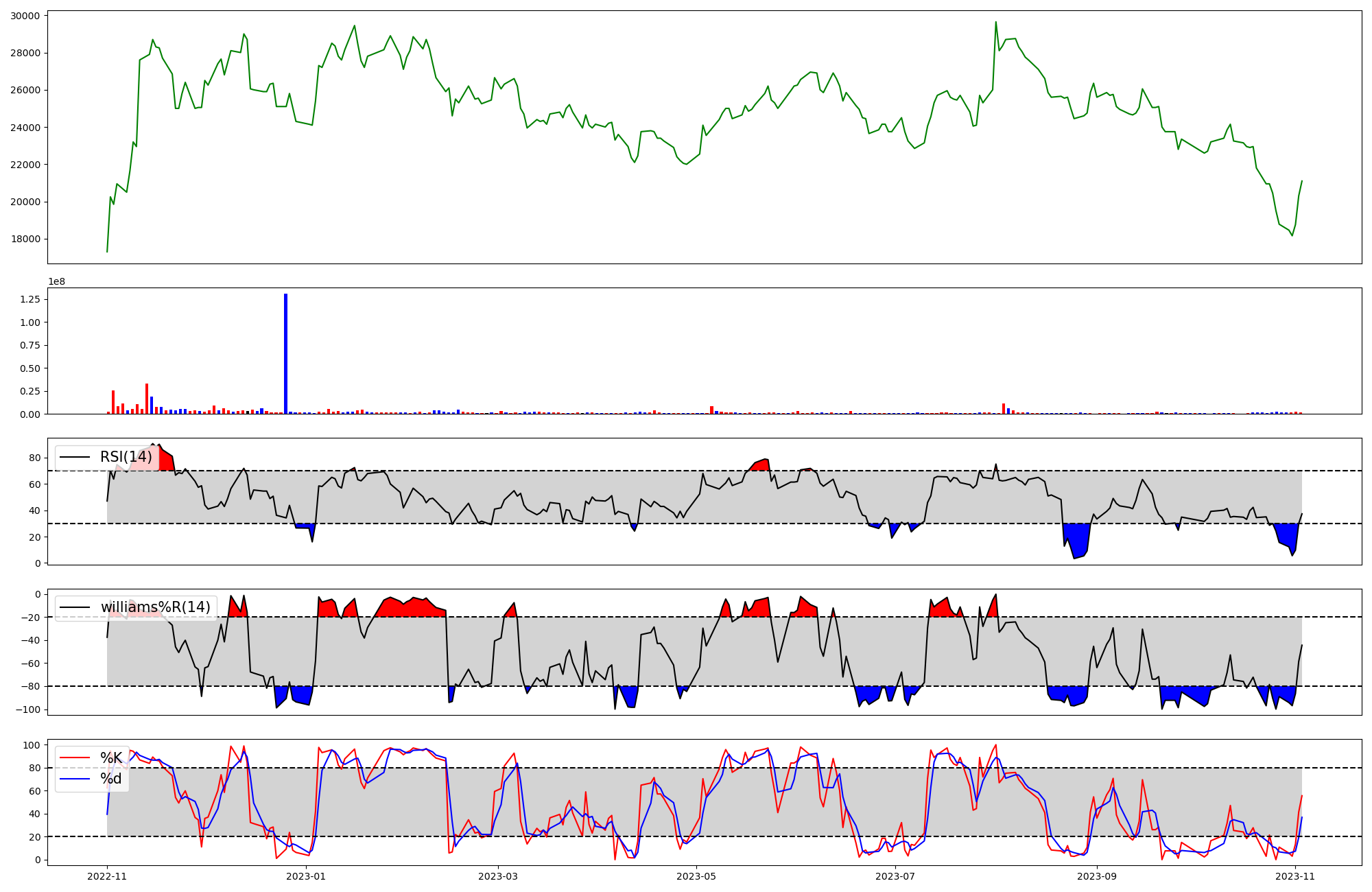 | RSI | Williams %R | stochastic(%K) | |
