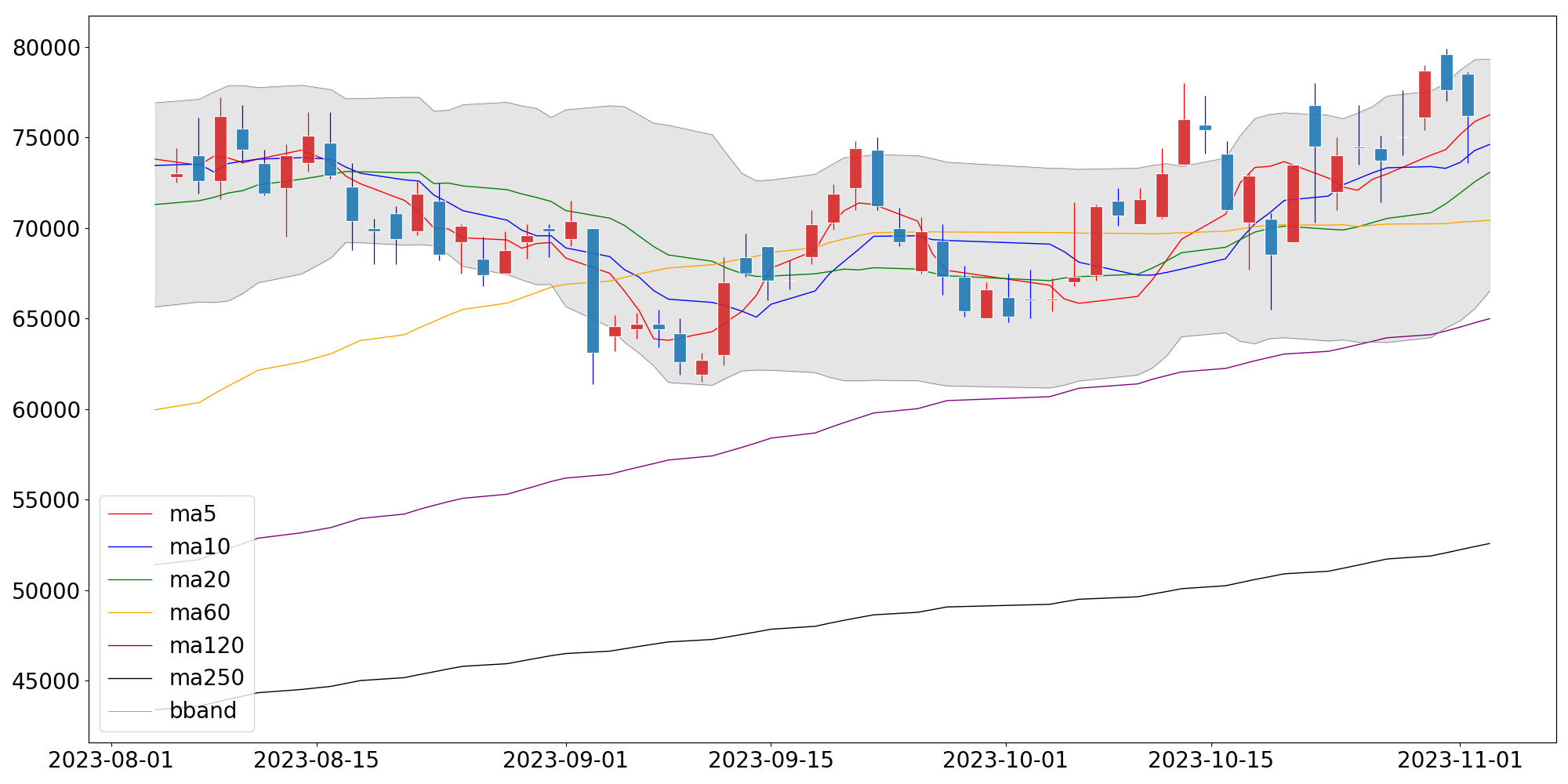 | 단순이동평균 | 76,240.00 | 74,610.00 | 73,065.00 |