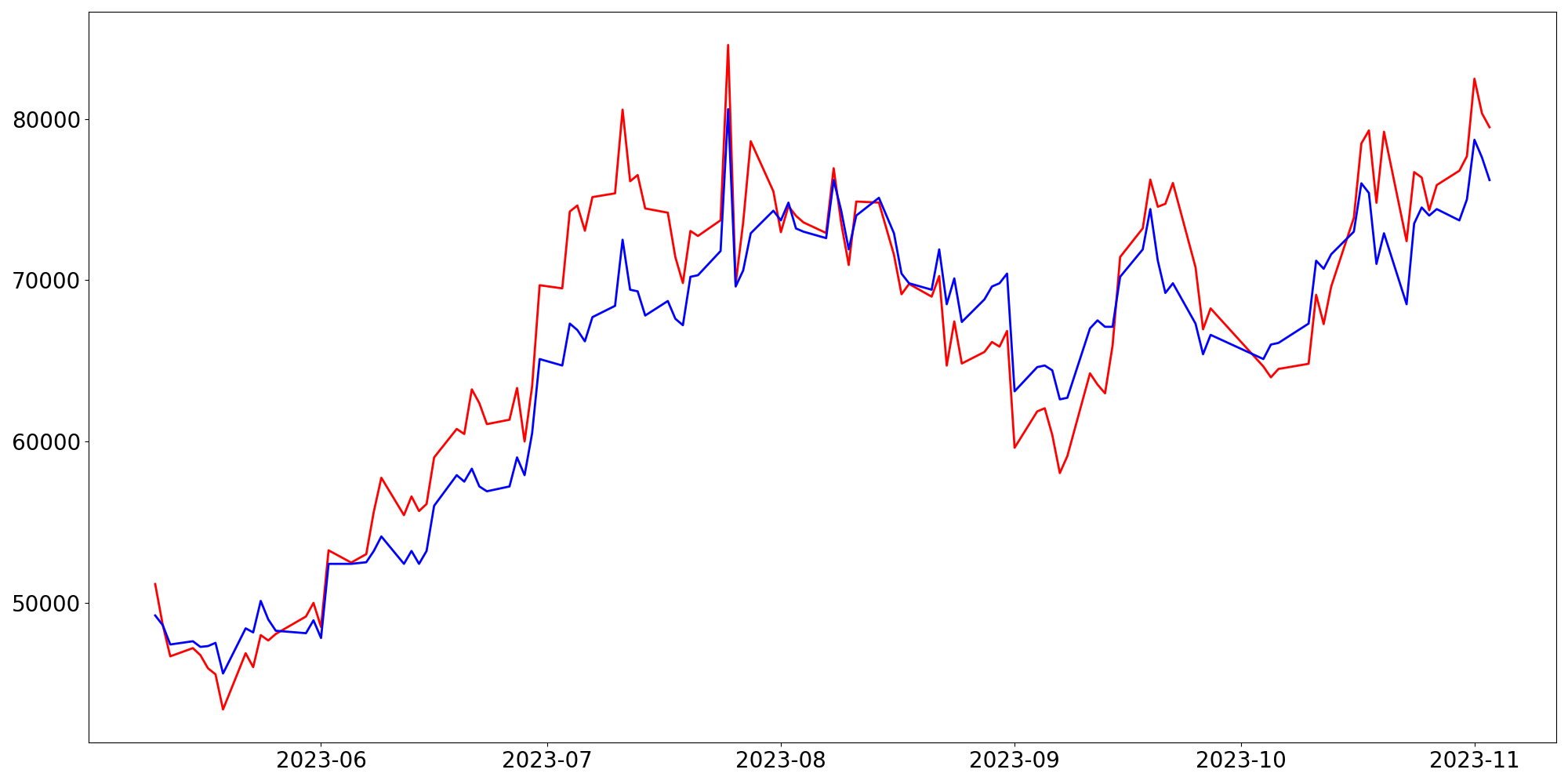 [ - : 실제값(종가) / - : 예측값(종가) ]