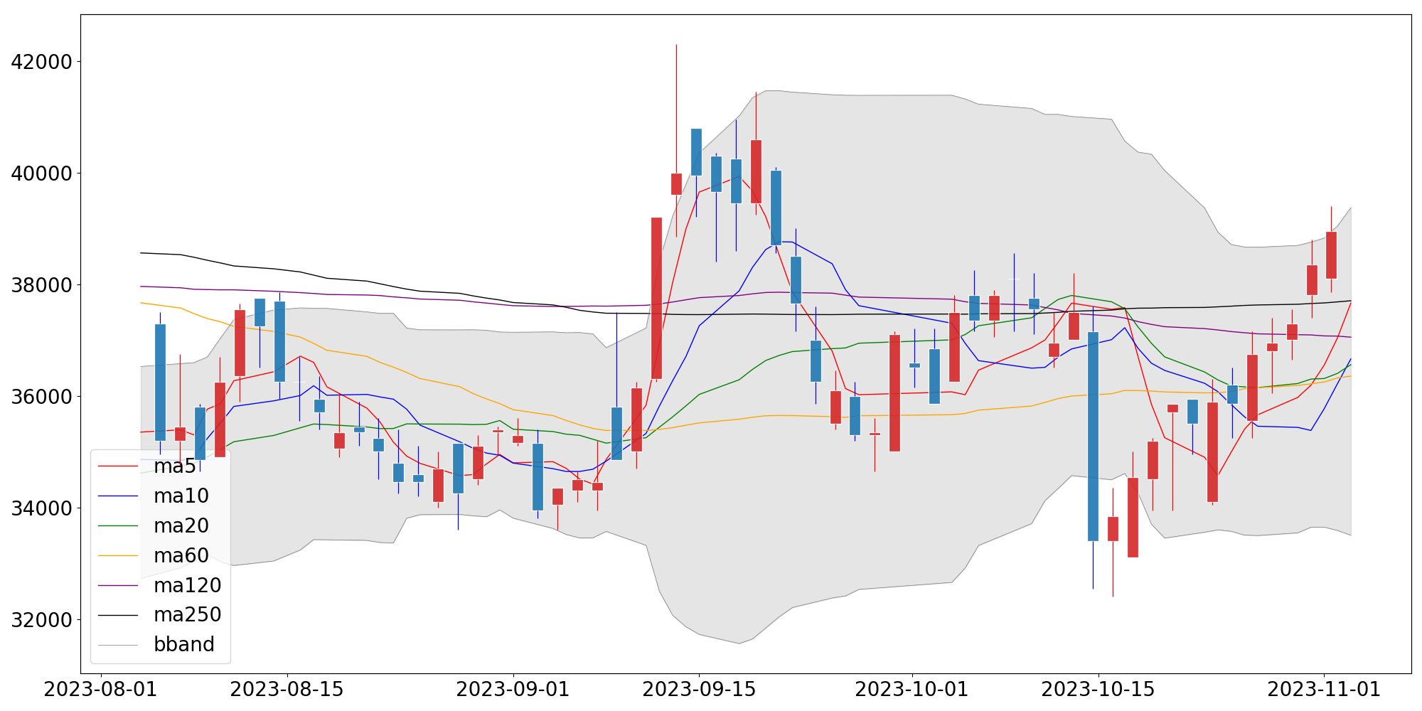 | 단순이동평균 | 37,660.00 | 36,660.00 | 36,557.50 |