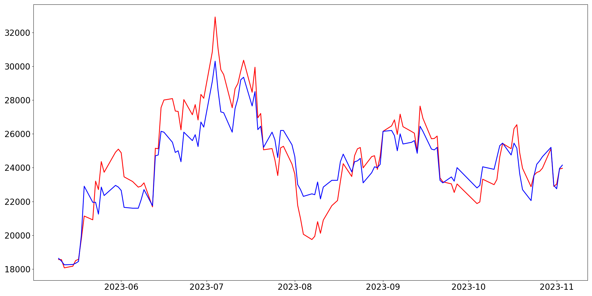 [ - : 실제값(종가) / - : 예측값(종가) ]