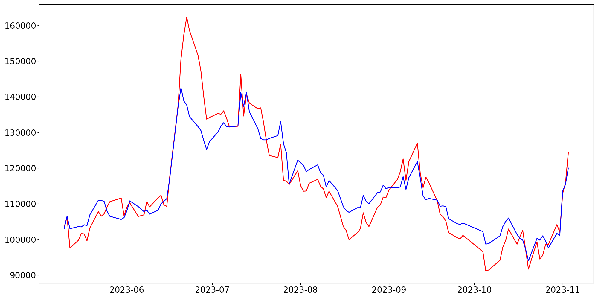 [ - : 실제값(종가) / - : 예측값(종가) ]