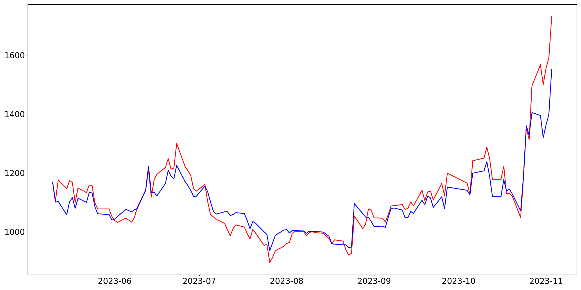 [ - : 실제값(종가) / - : 예측값(종가) ]