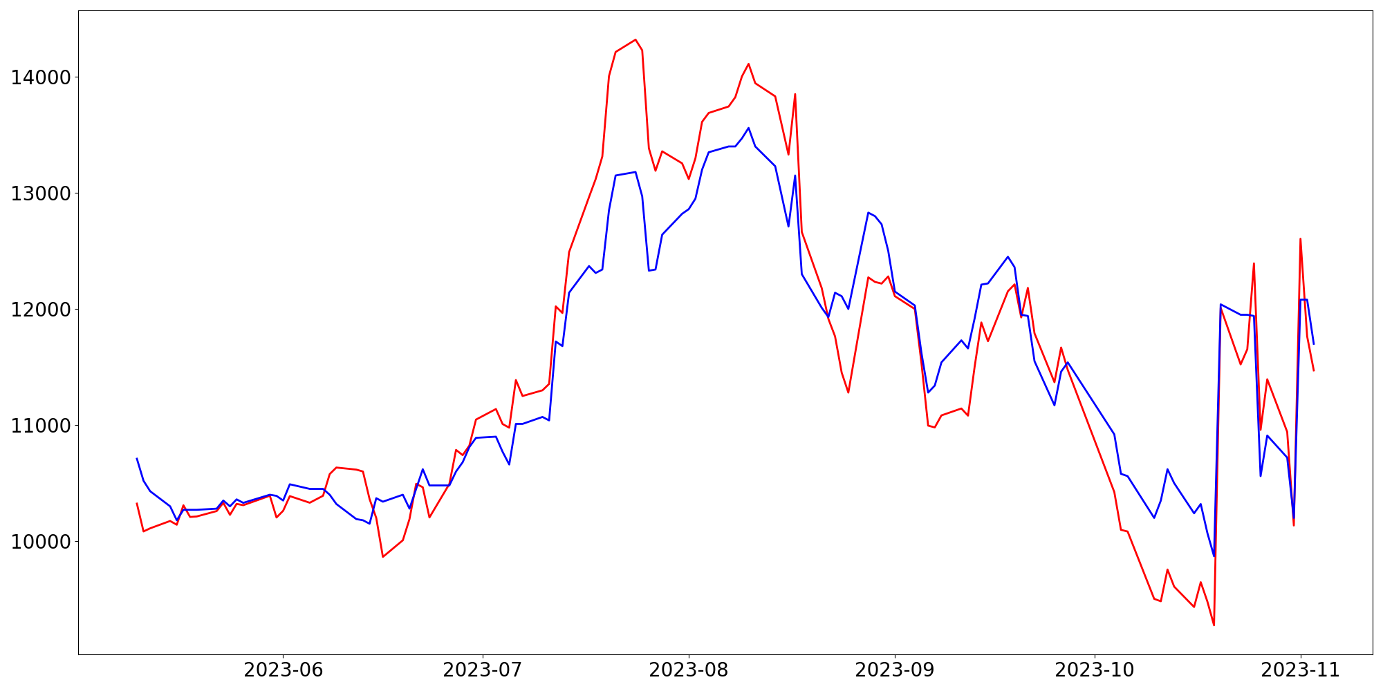 [ - : 실제값(종가) / - : 예측값(종가) ]