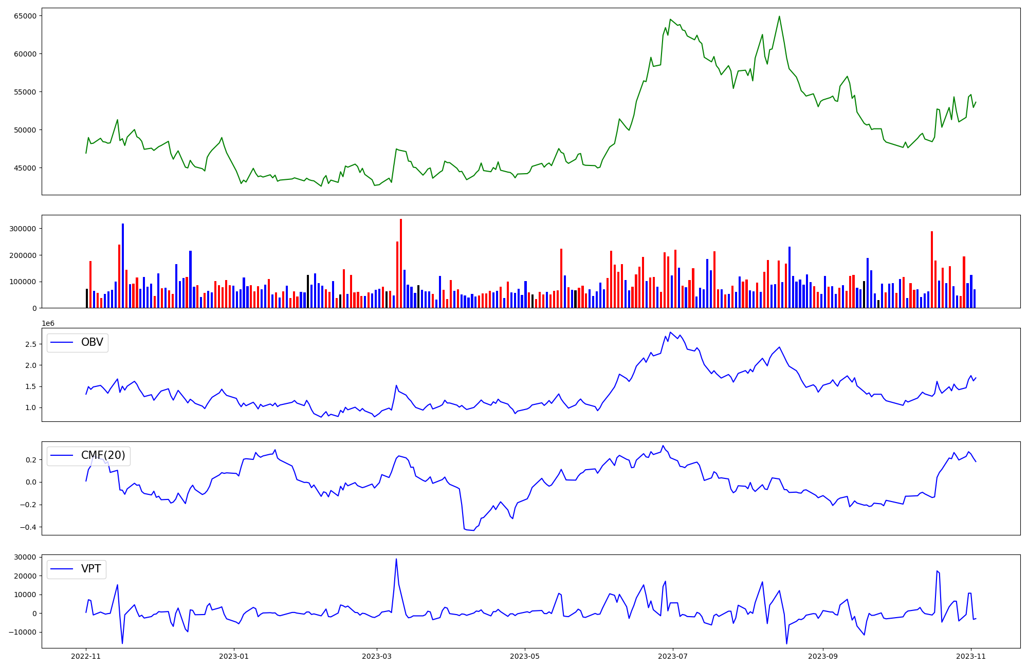| OBV | CMF | VPT | |