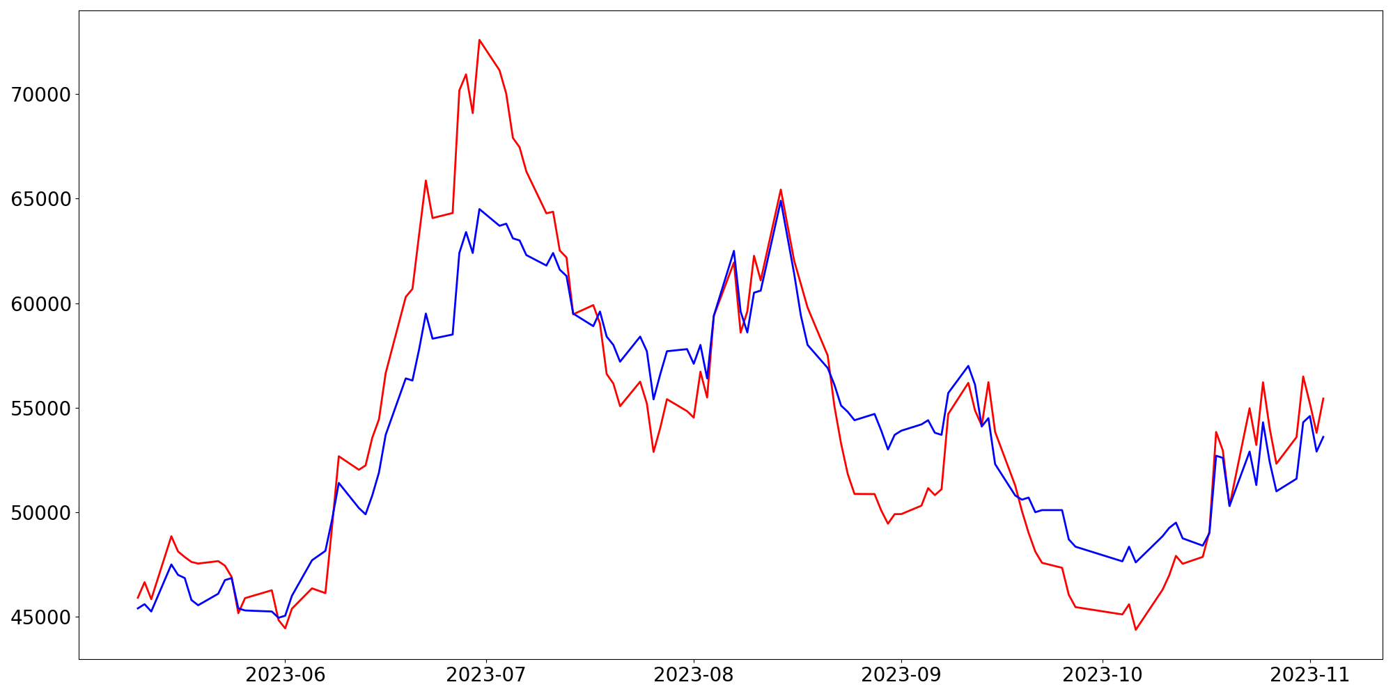 [ - : 실제값(종가) / - : 예측값(종가) ]