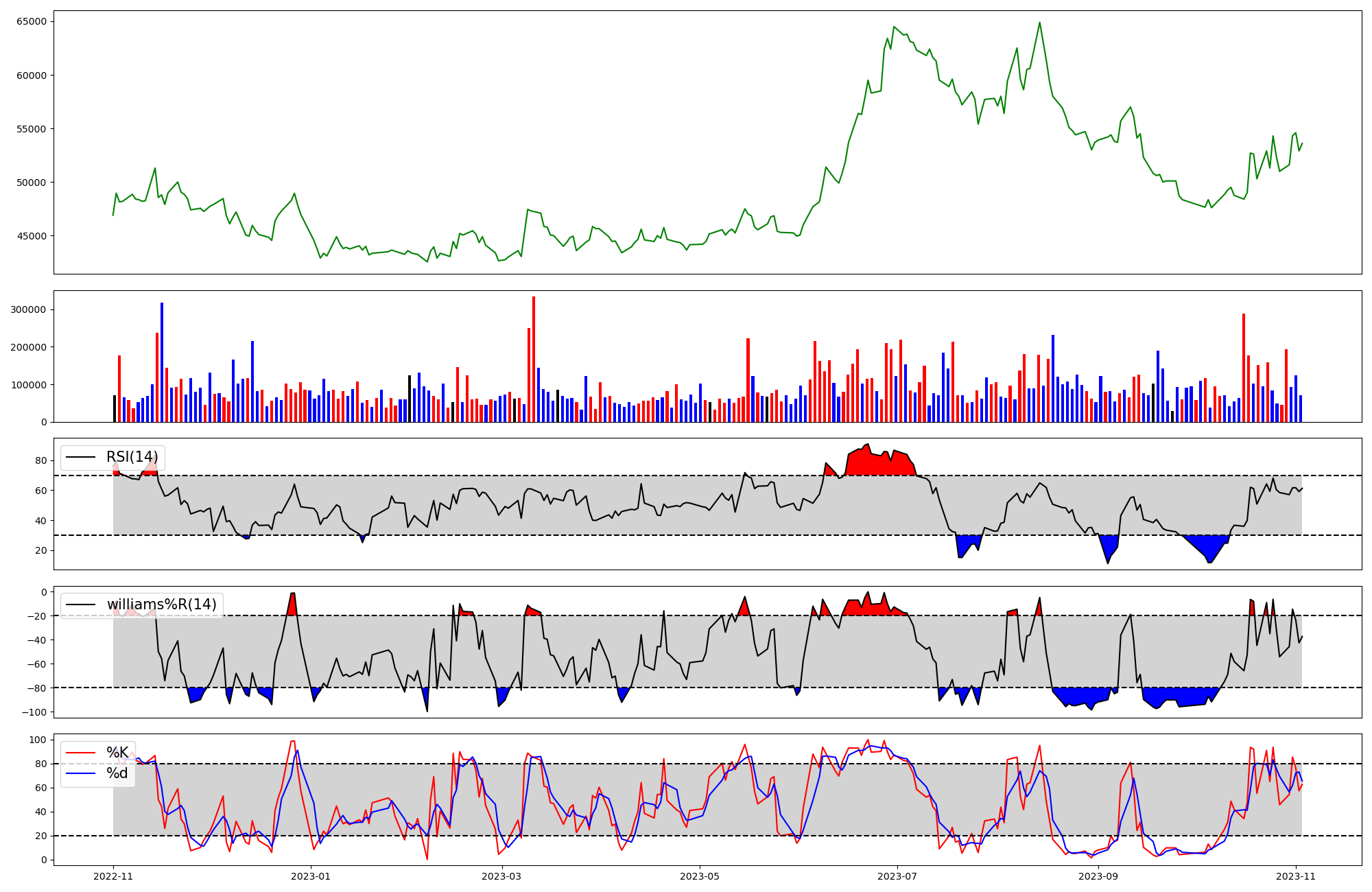 | RSI | Williams %R | stochastic(%K) | |