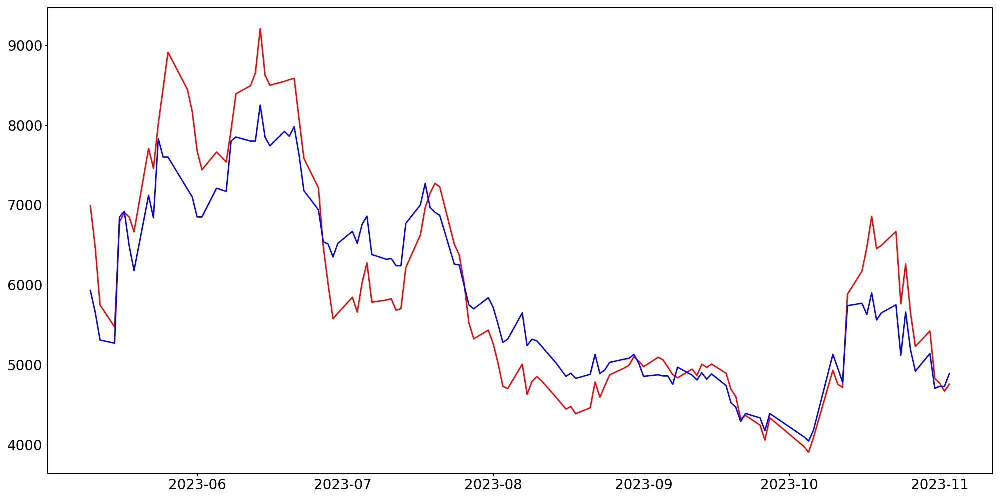 [ - : 실제값(종가) / - : 예측값(종가) ]