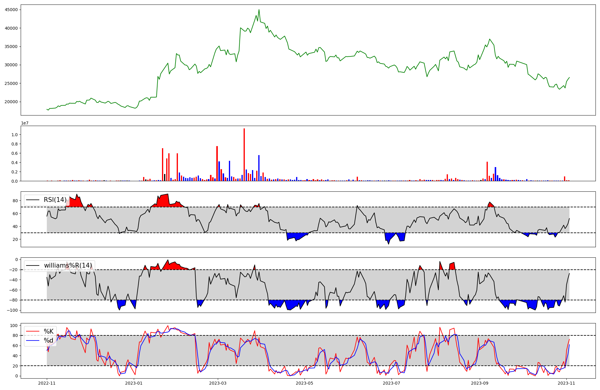 | RSI | Williams %R | stochastic(%K) | |