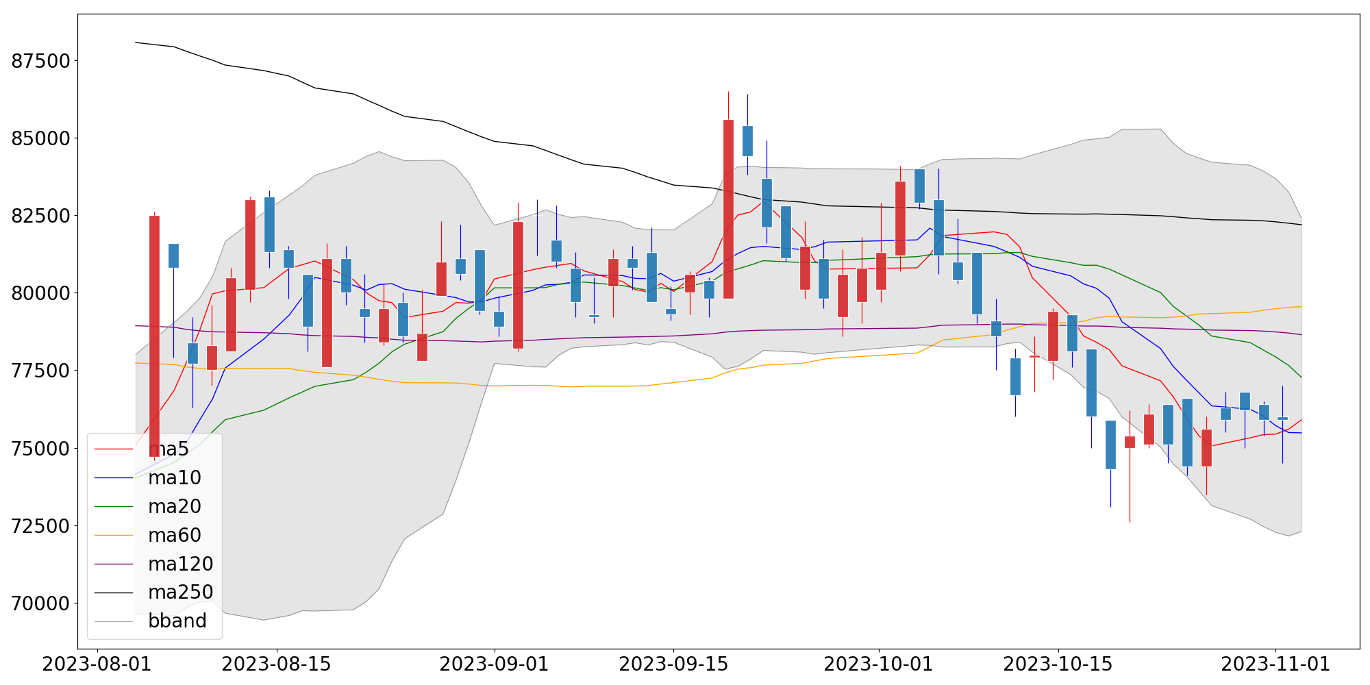 | 단순이동평균 | 75,900.00 | 75,480.00 | 77,270.00 |