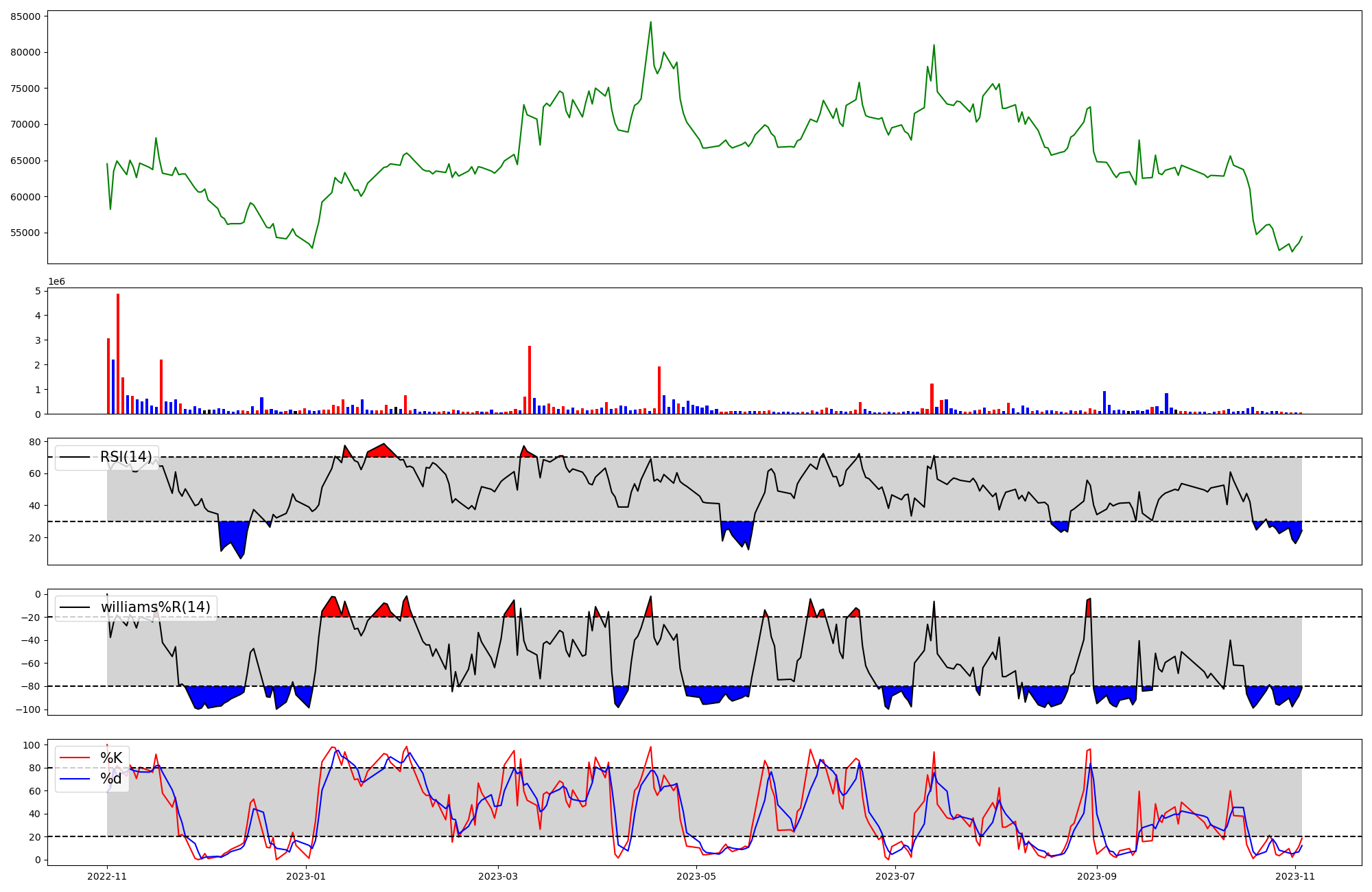 | RSI | Williams %R | stochastic(%K) | |