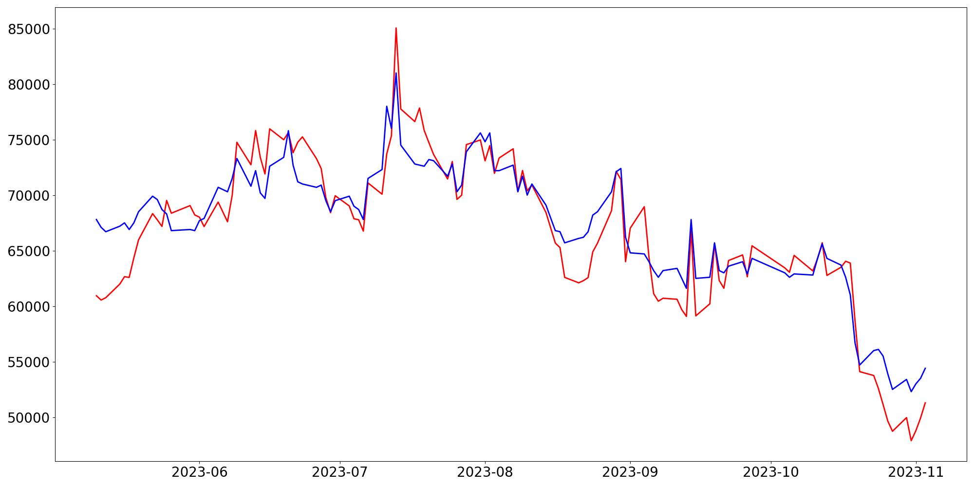 [ - : 실제값(종가) / - : 예측값(종가) ]