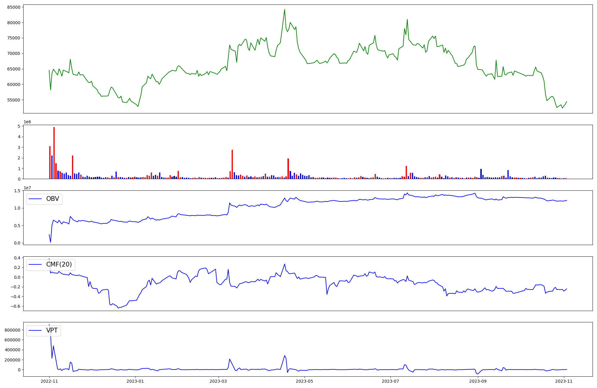 | OBV | CMF | VPT | |