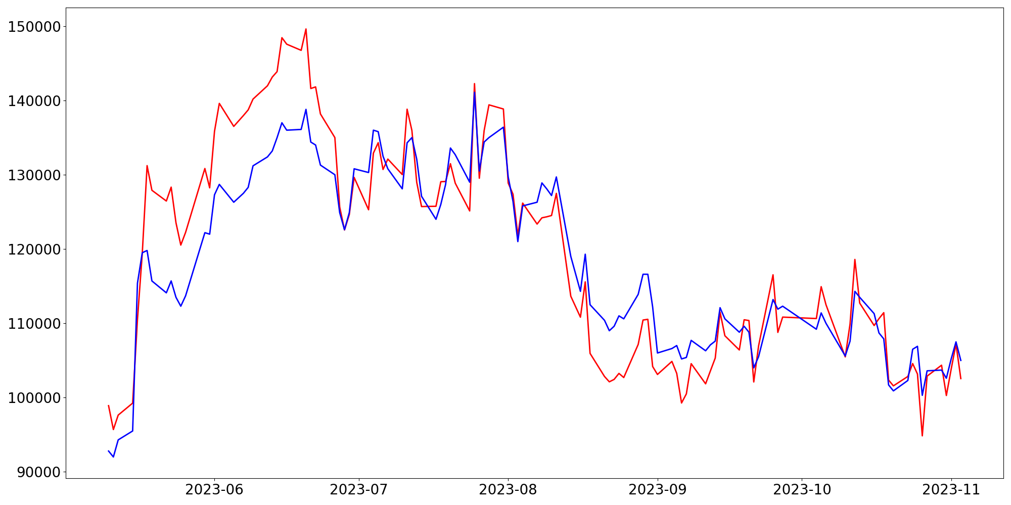 [ - : 실제값(종가) / - : 예측값(종가) ]