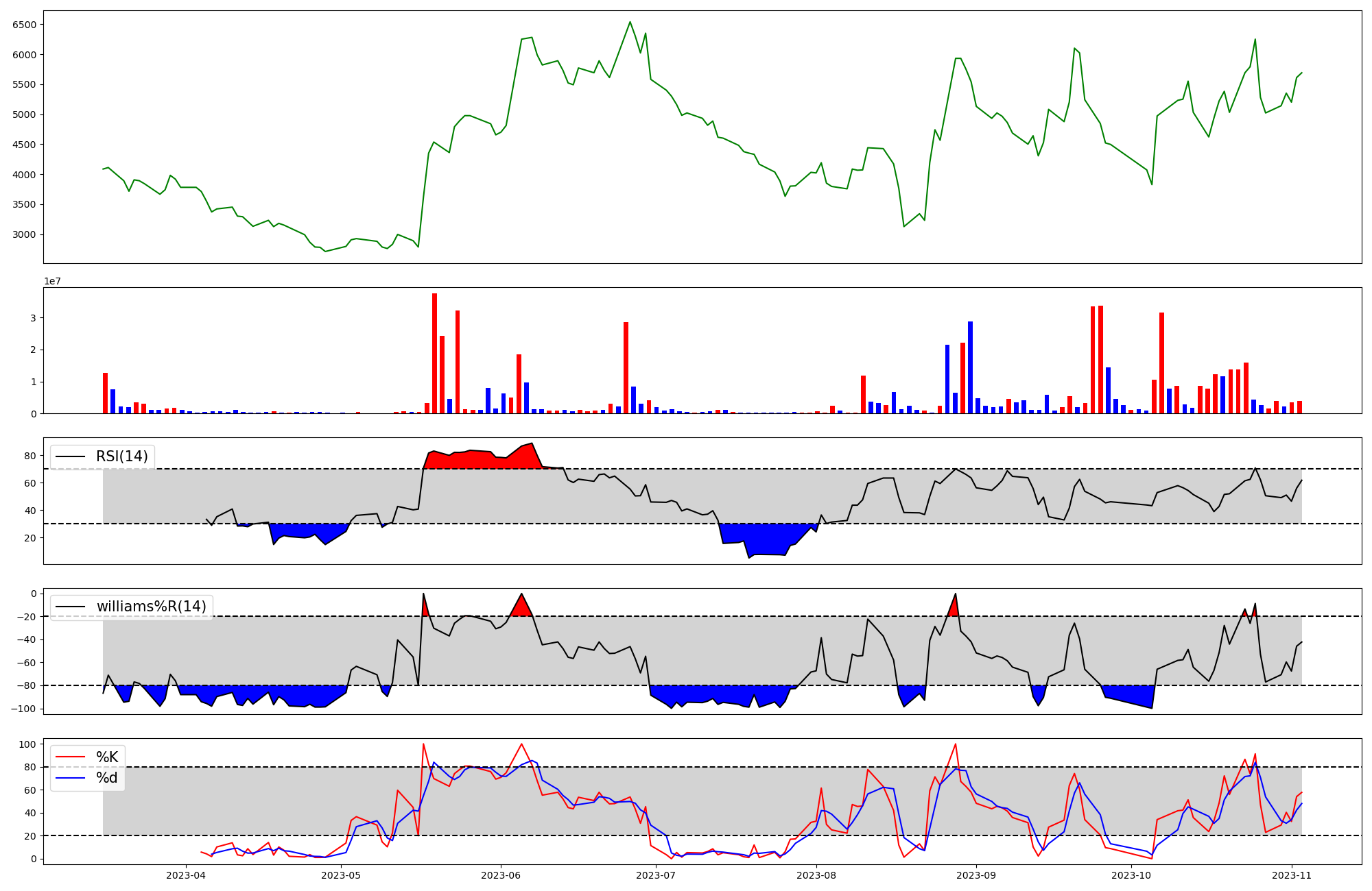 | RSI | Williams %R | stochastic(%K) | |
