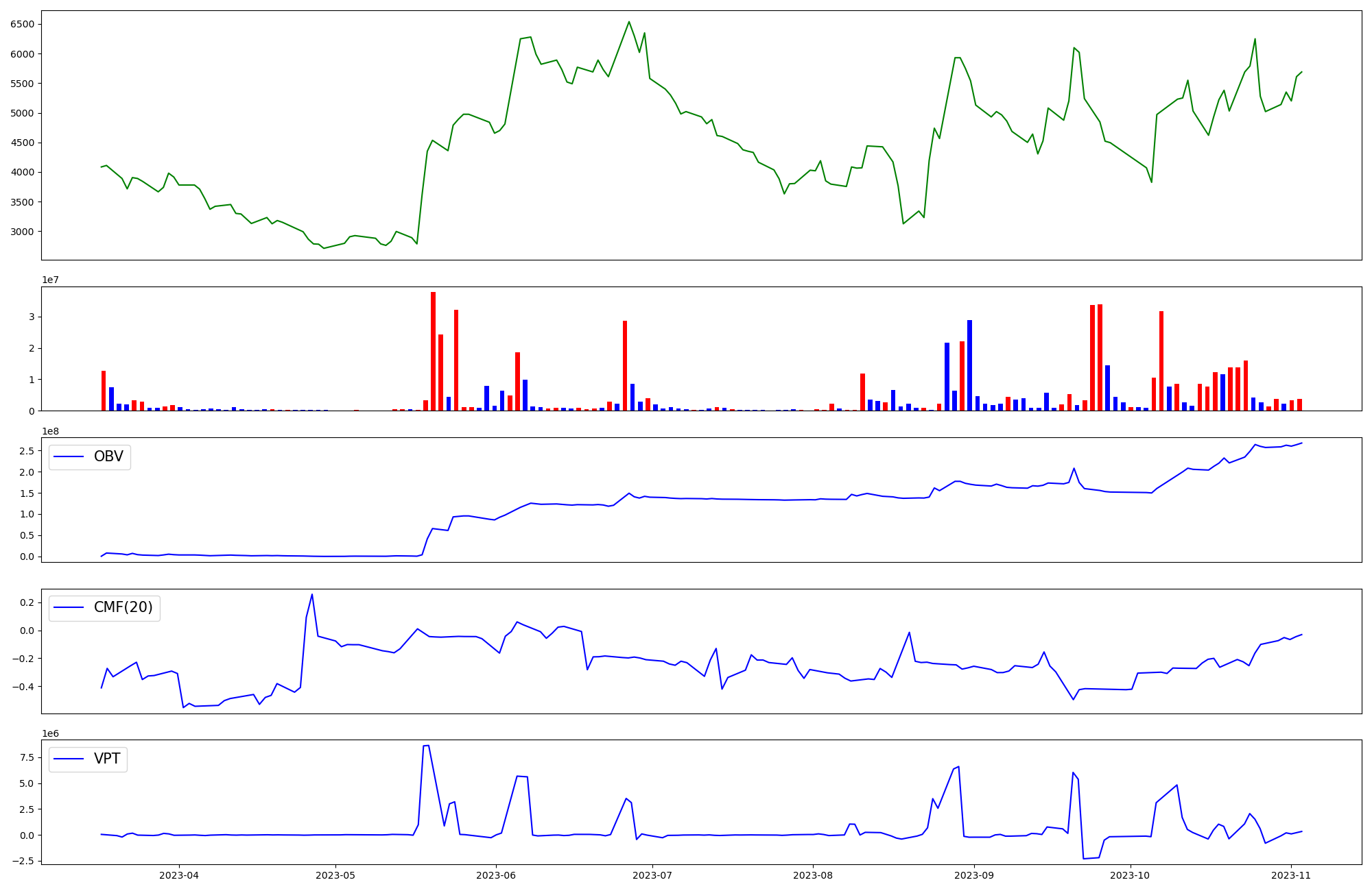 | OBV | CMF | VPT | |