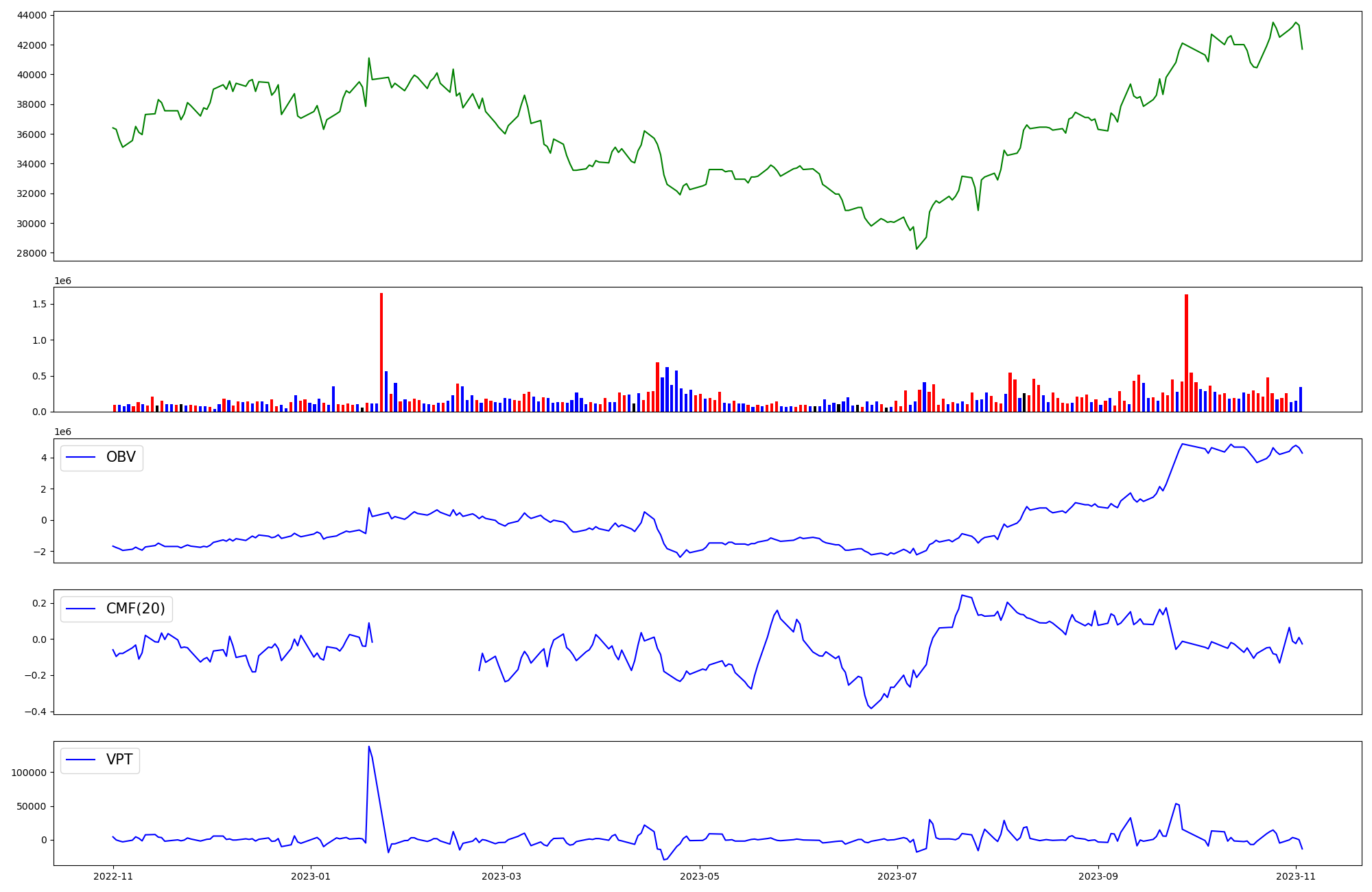 | OBV | CMF | VPT | |