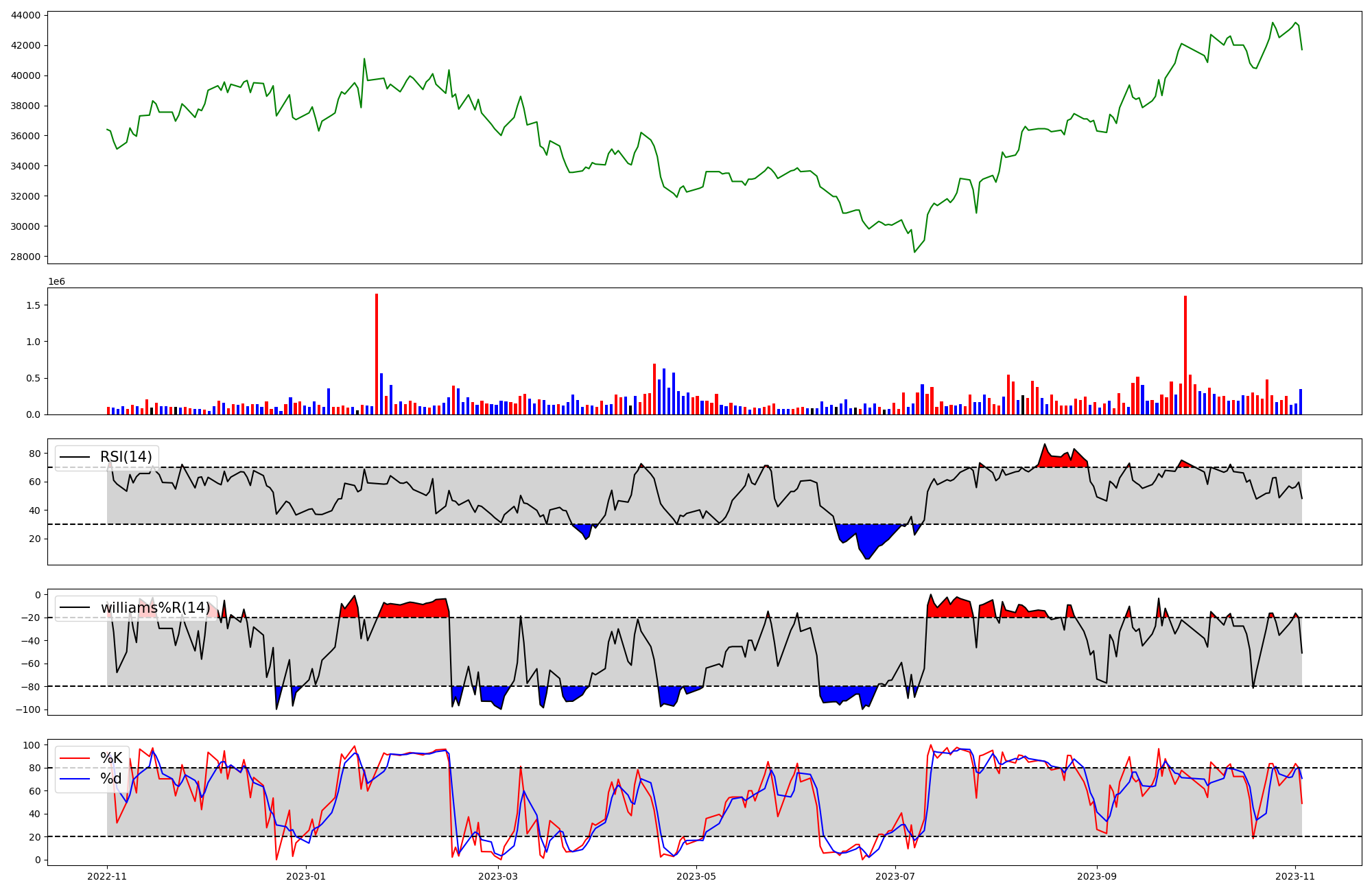 | RSI | Williams %R | stochastic(%K) | |